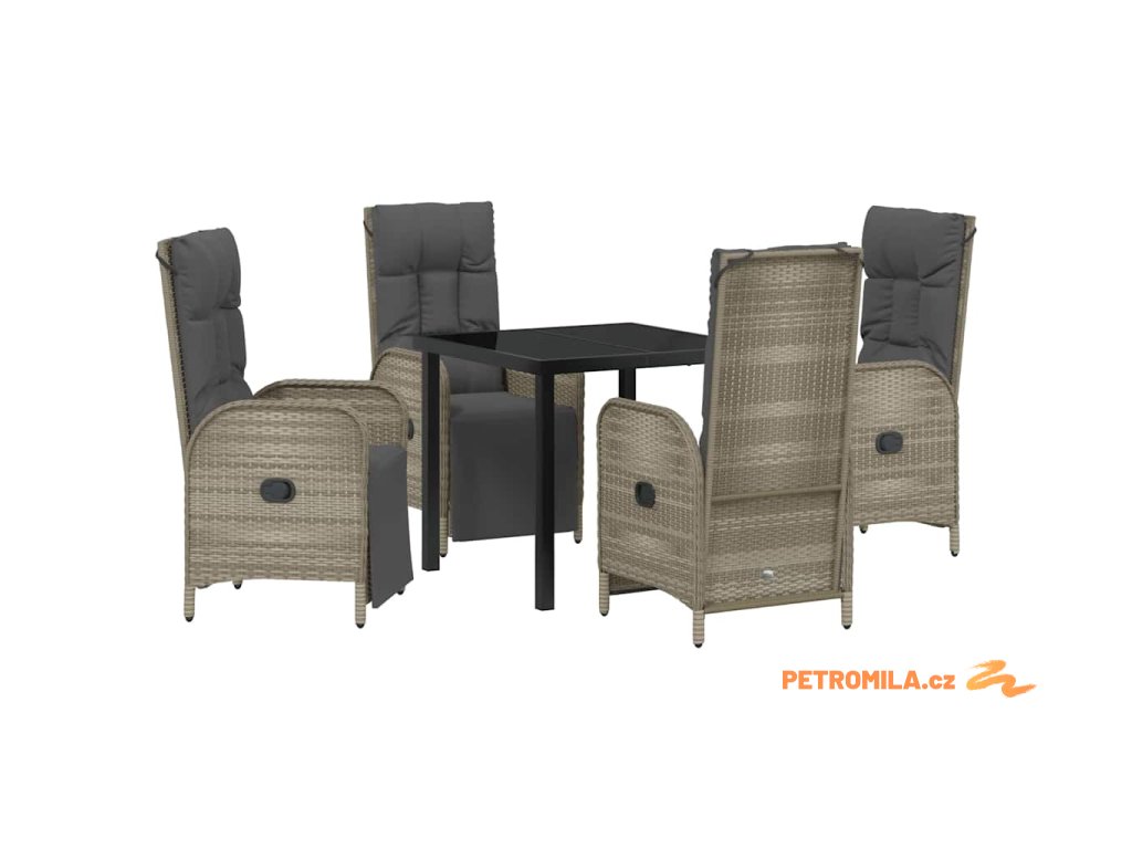 Zahradní jídelní souprava s polštářem 5 pcs Šedá Poly ratan