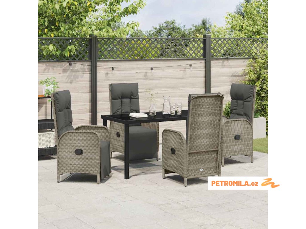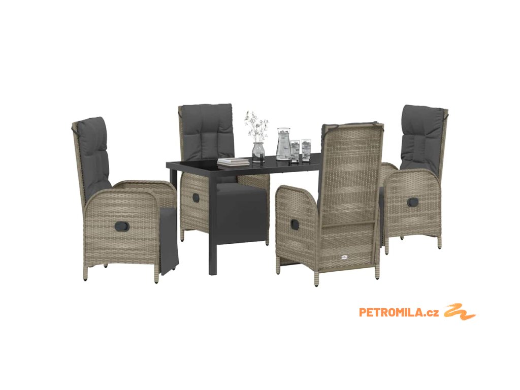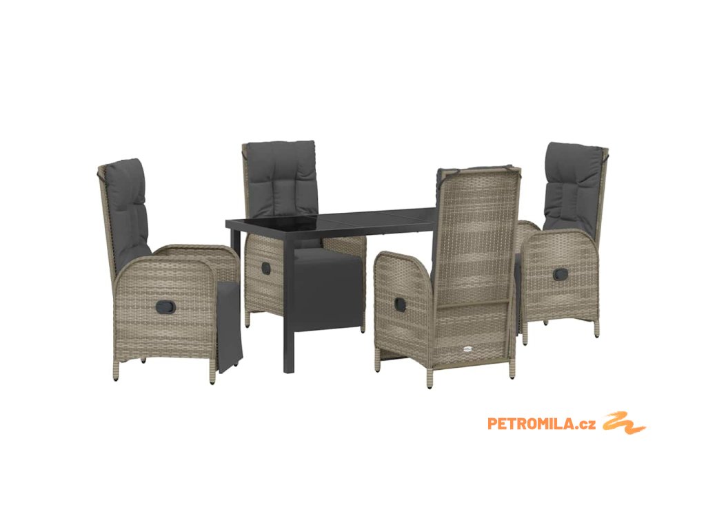Zahradní jídelní souprava s polštářem 5 pcs Šedá Poly ratan