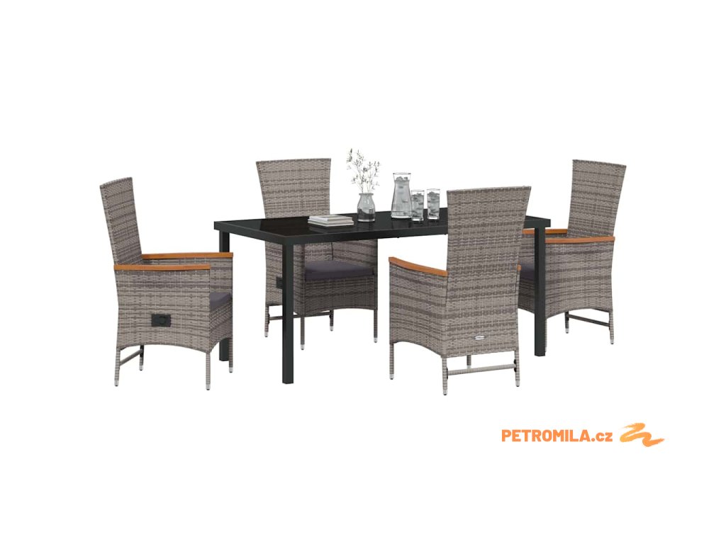 Zahradní jídelní souprava s polštářem 5 pcs Šedá Poly ratan