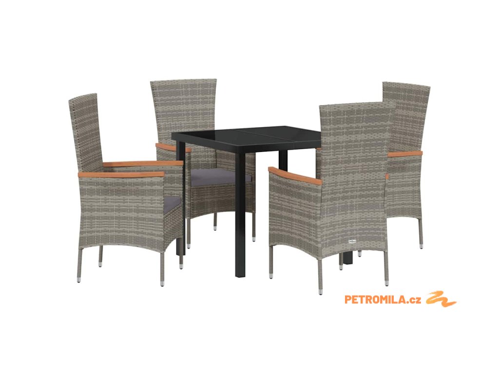 Zahradní jídelní souprava s polštářem 5 pcs Šedá Poly ratan
