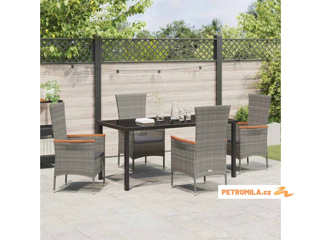Zahradní jídelní souprava s polštářem 5 pcs Šedá Poly ratan