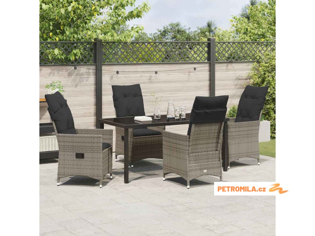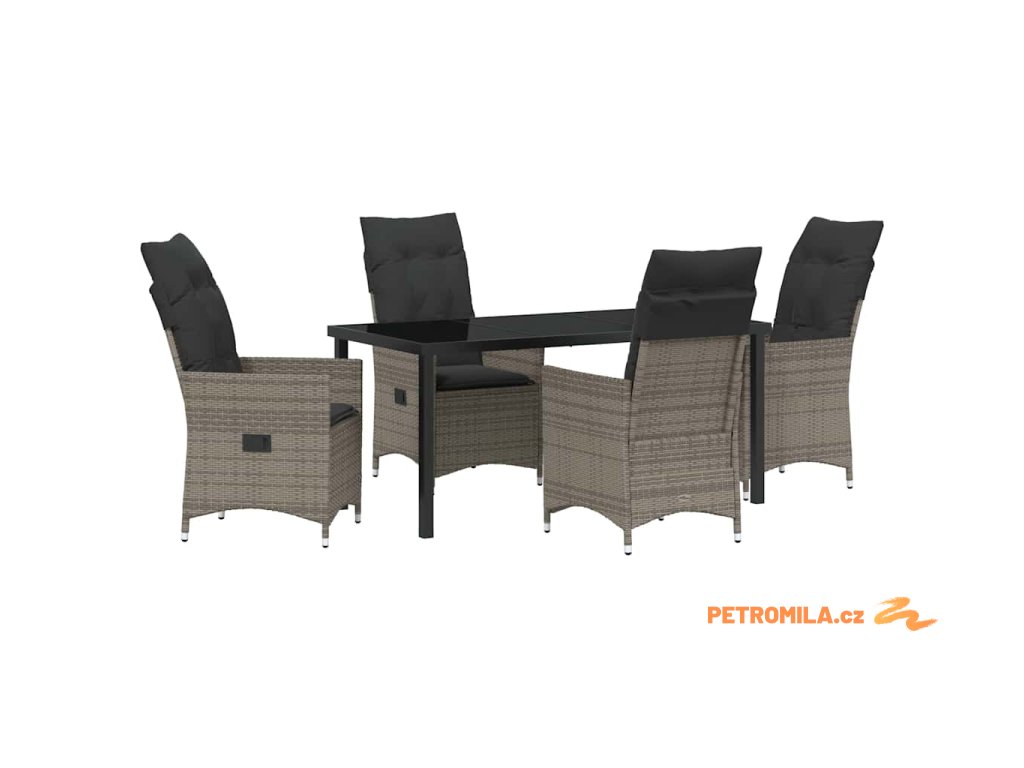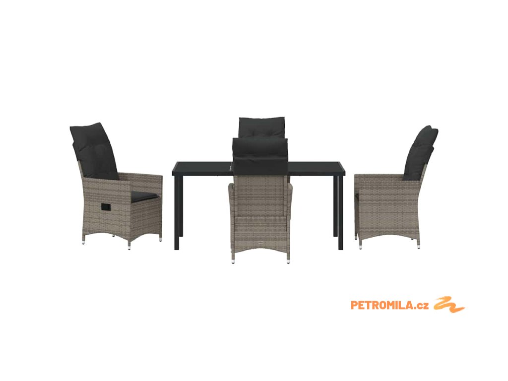 Zahradní jídelní souprava s polštářem 5 pcs Šedá Poly ratan