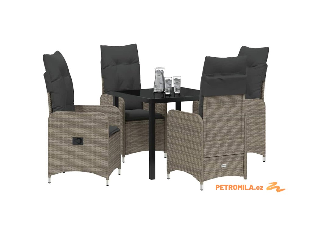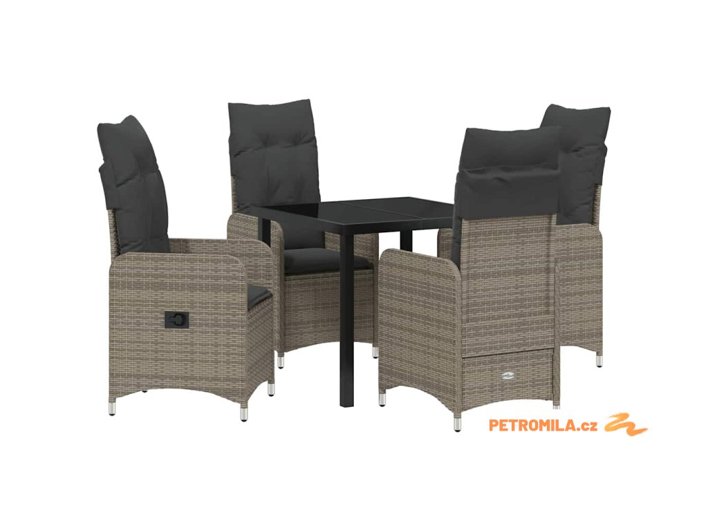 Zahradní jídelní souprava s polštářem 5 pcs Šedá Poly ratan