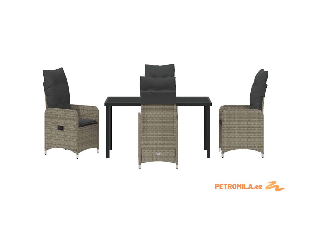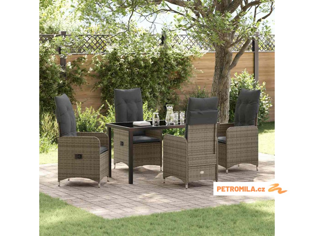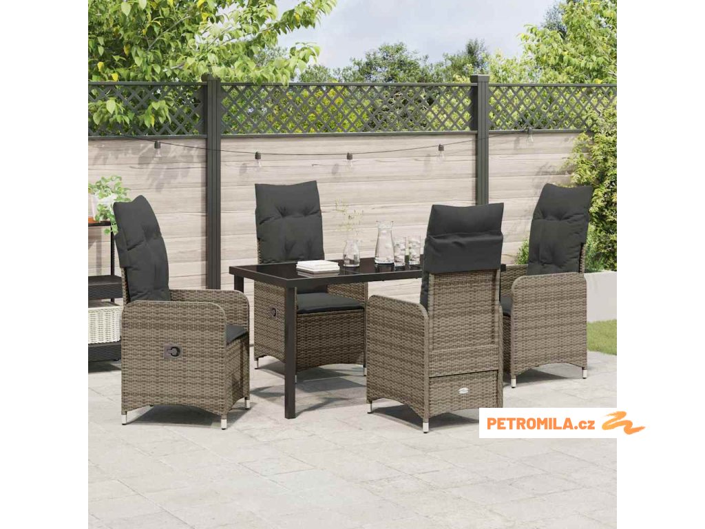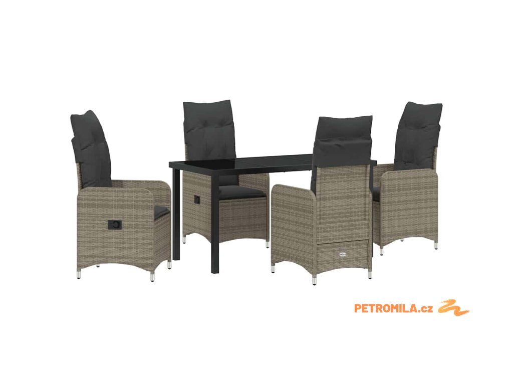 Zahradní jídelní souprava s polštářem 5 pcs Šedá Poly ratan