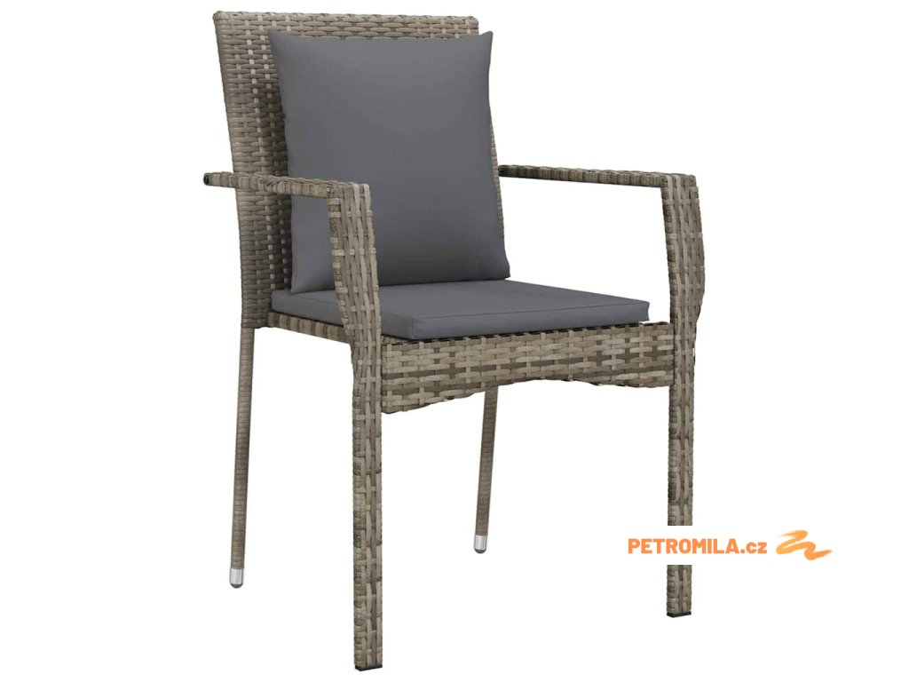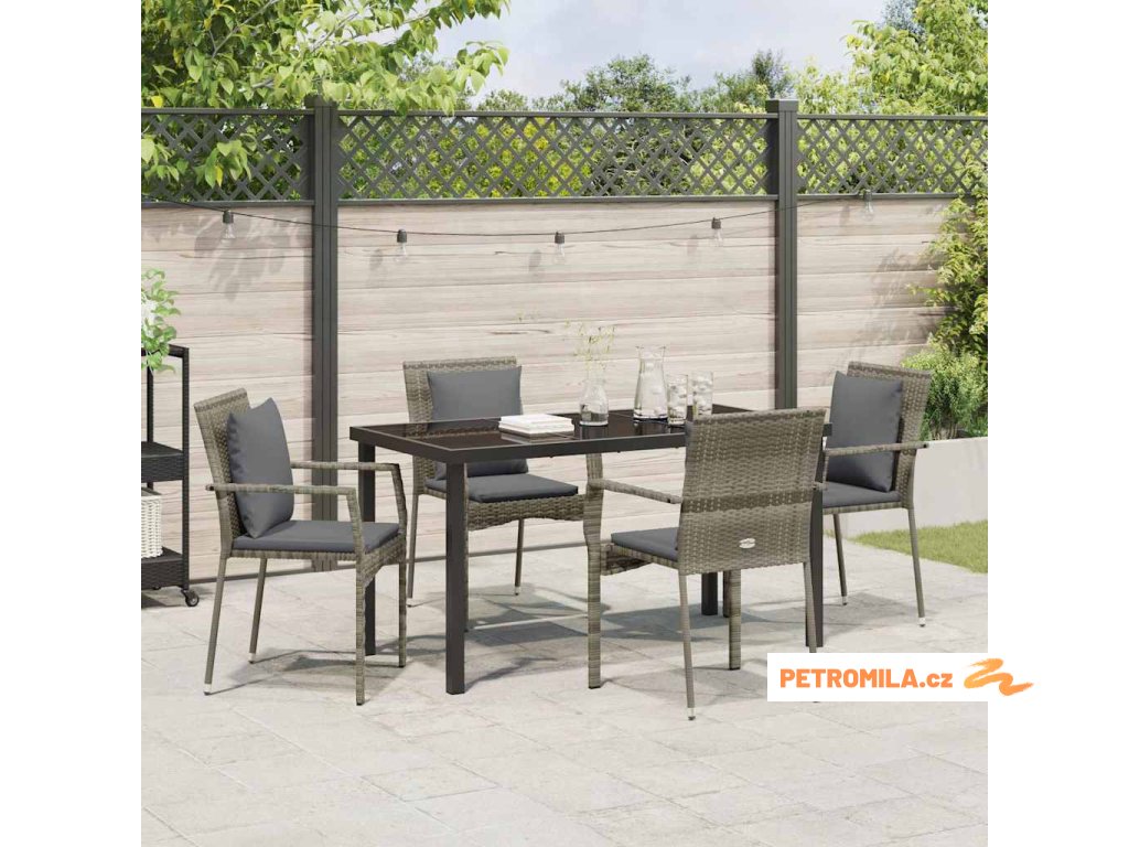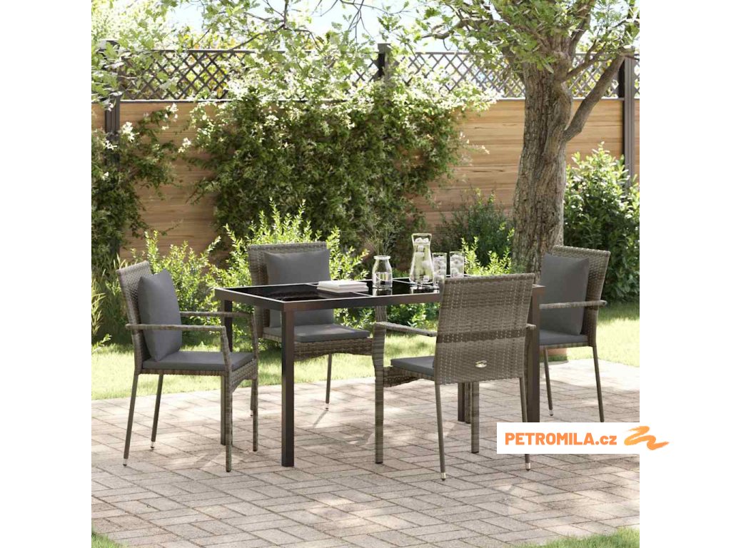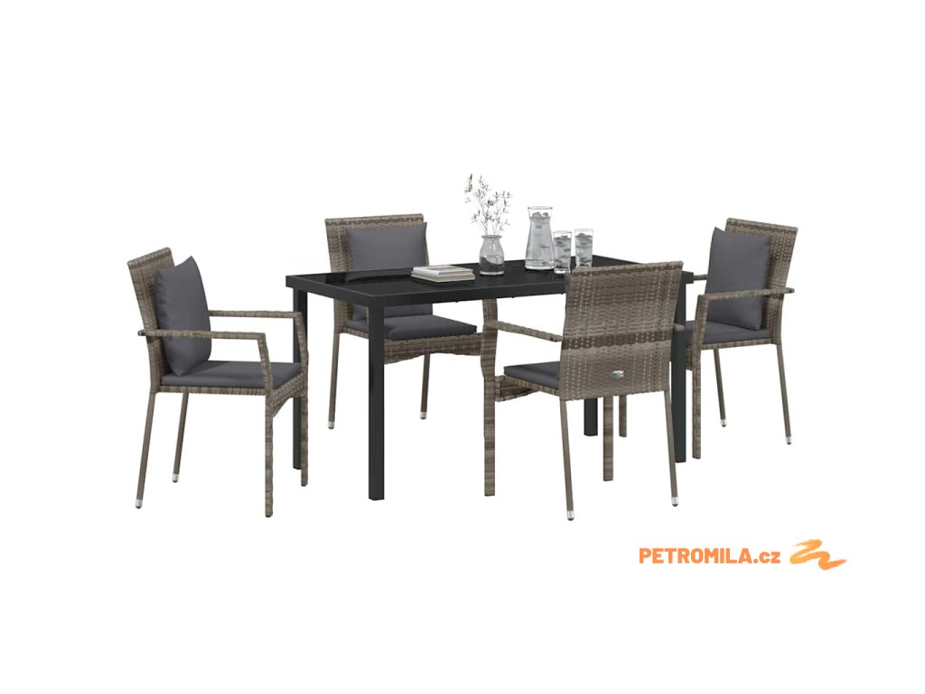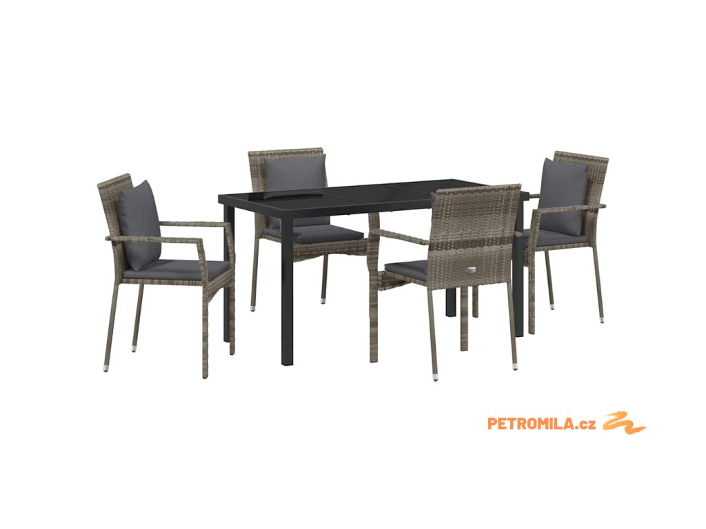 Zahradní jídelní souprava s polštářem 5 pcs Šedá Poly ratan