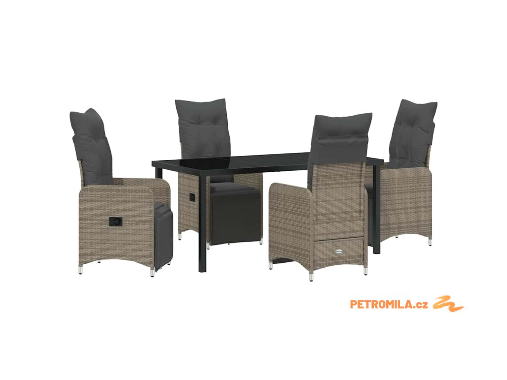 Zahradní jídelní souprava s polštářem 5 pcs Šedá Poly ratan