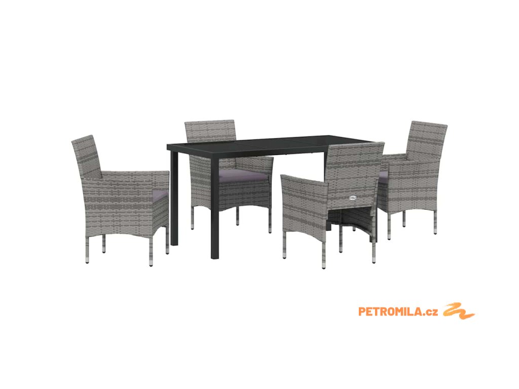 Zahradní jídelní souprava s polštářem 5 pcs Šedá Poly ratan