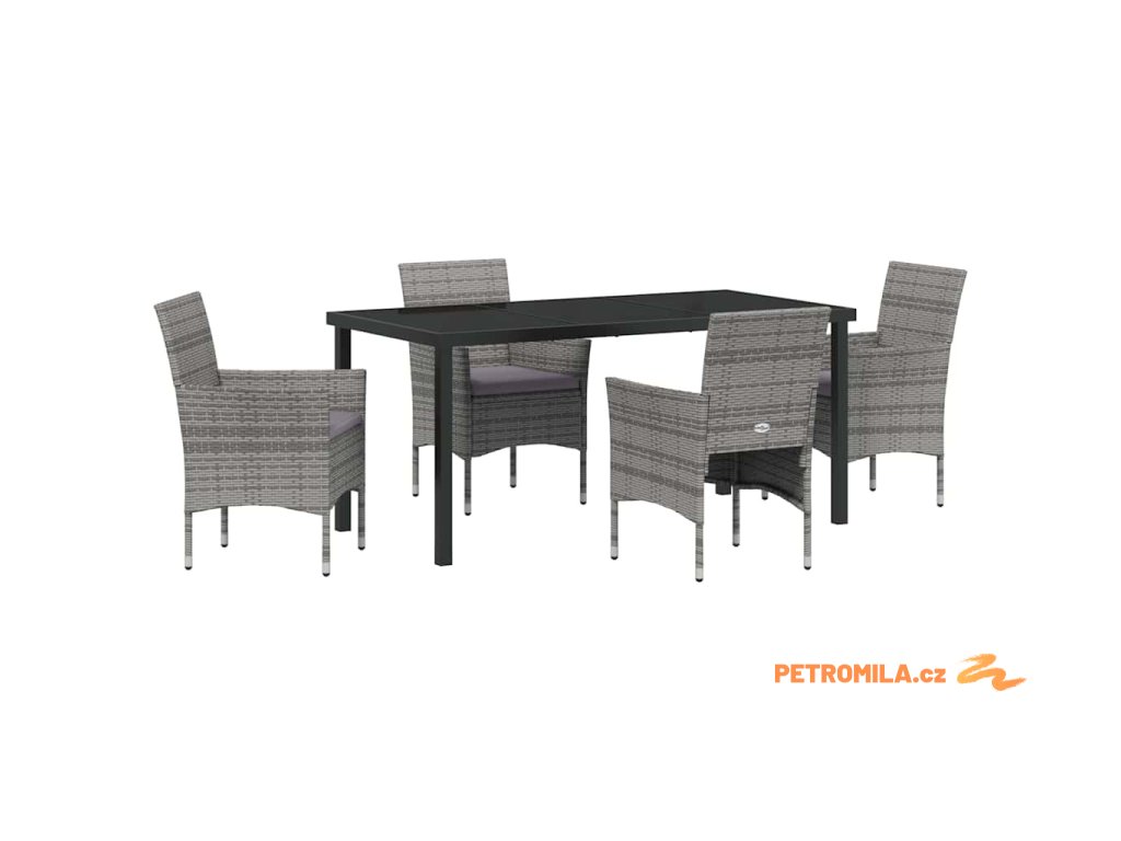 Zahradní jídelní souprava s polštářem 5 pcs Šedá Poly ratan