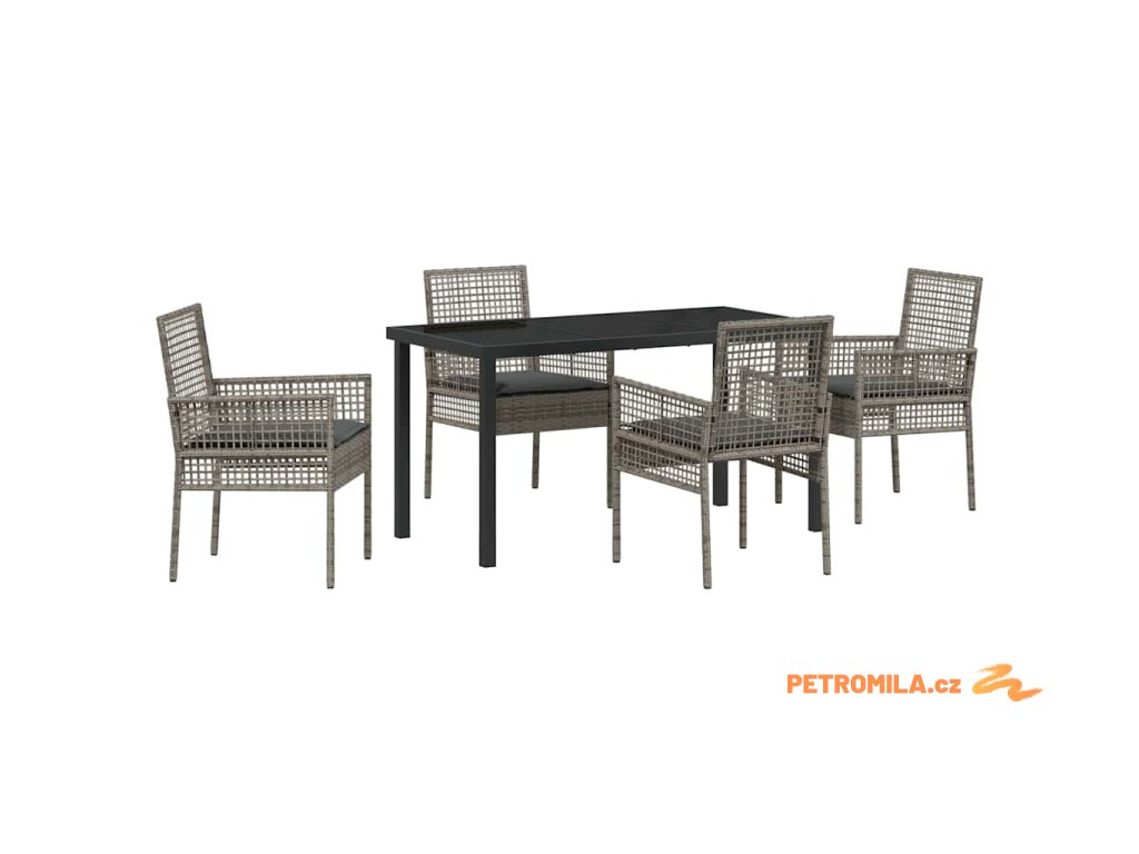 Zahradní jídelní souprava s polštářem 5 pcs Šedá Poly ratan