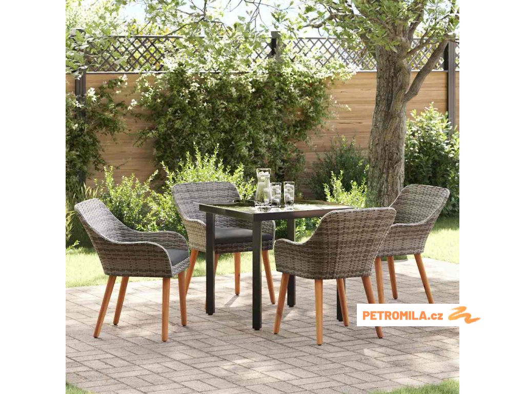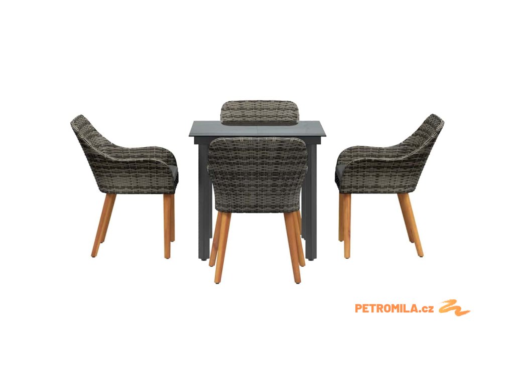 Zahradní jídelní souprava 5 pcs Šedá Poly ratan