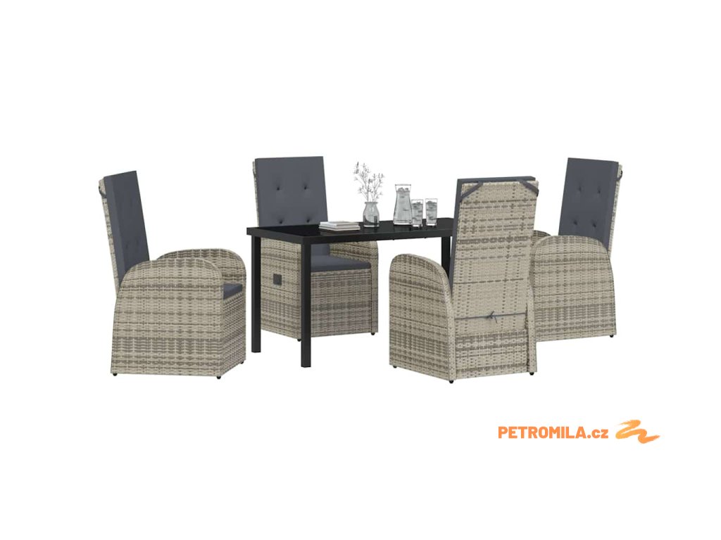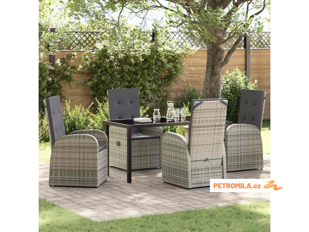 Zahradní jídelní souprava s polštářem 5 pcs Šedá polyratan