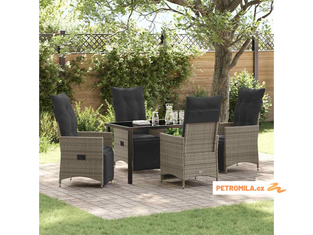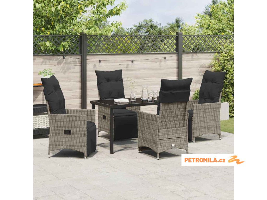 Zahradní jídelní souprava s polštářem 5 pcs Šedá polyratan