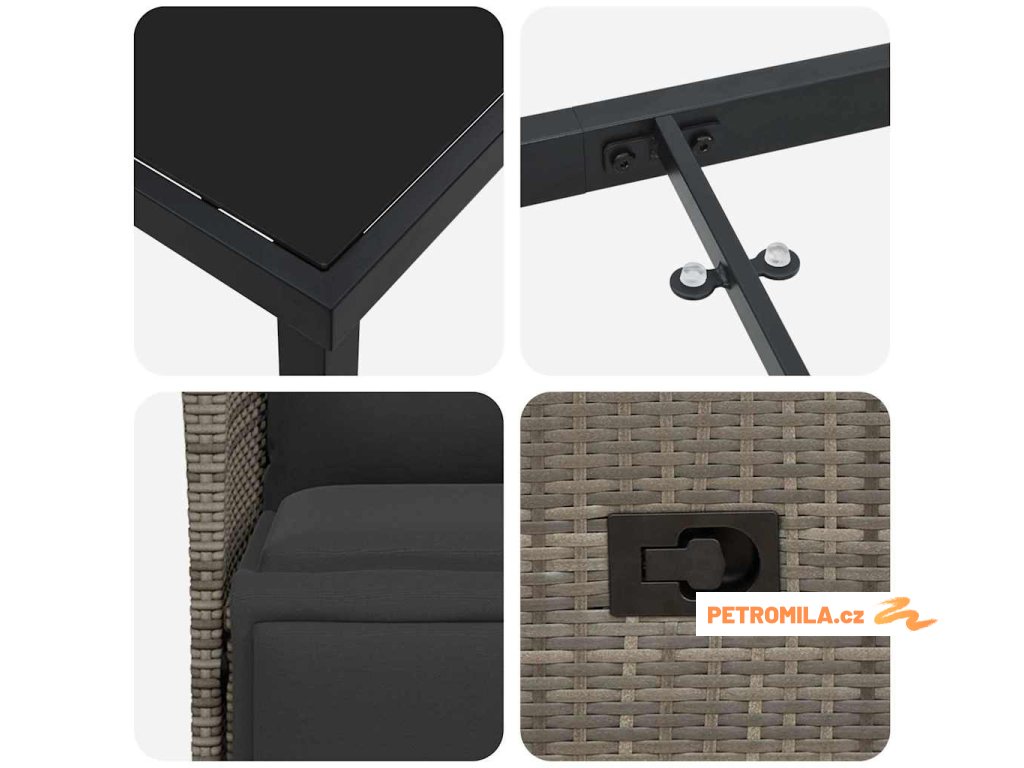 - Jednoduchá péče a údržba Chcete-li zajistit jeho dlouhou životnost, zakrývejte set, když ho nepoužíváte. Polštáře mají odnímatelné a pratelné potahy, což zjednodušuje údržbu a udržuje set v čistotě po celý rok.