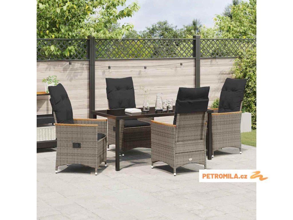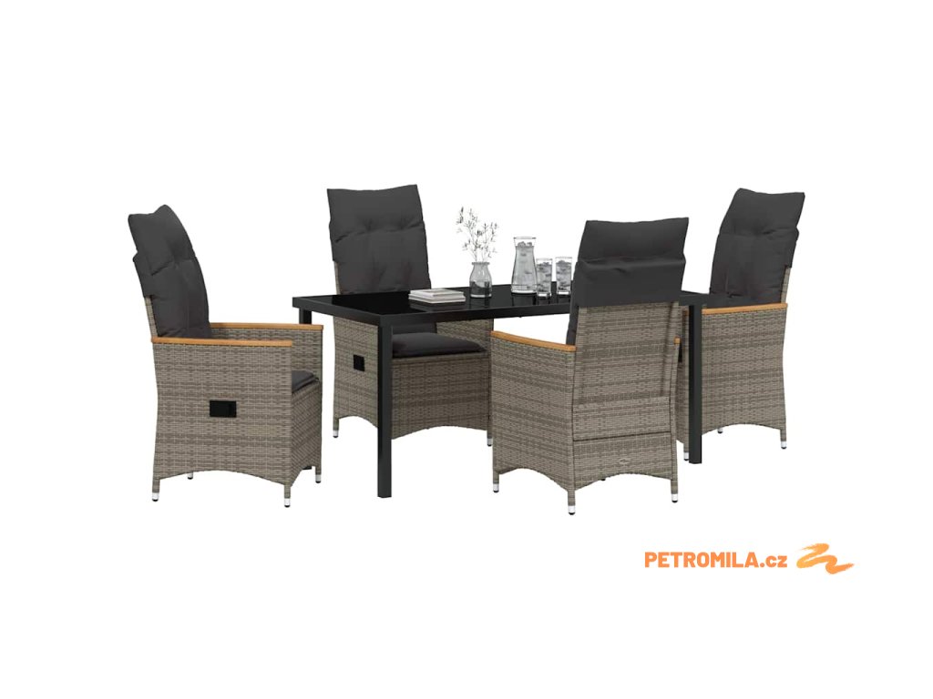 Zahradní jídelní souprava s polštářem 5 pcs Šedá polyratan