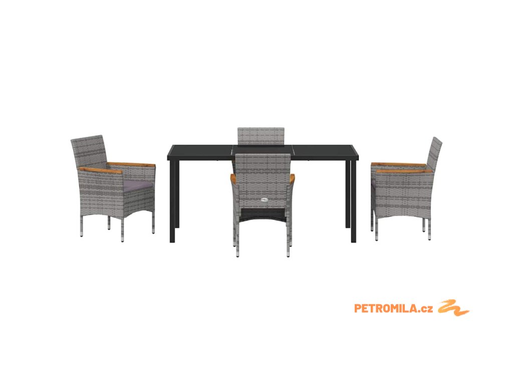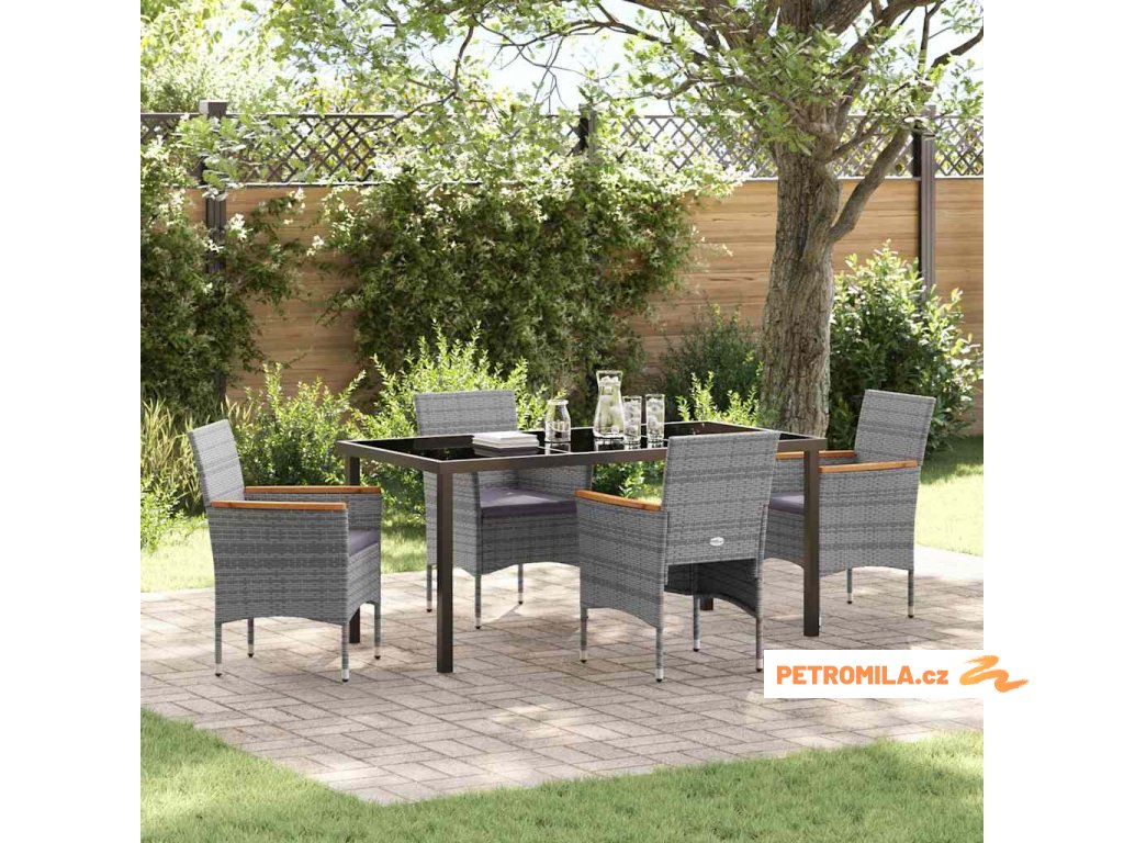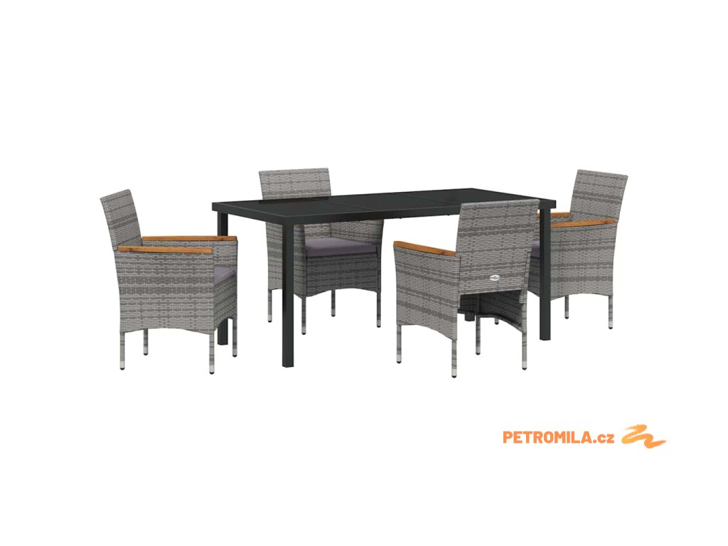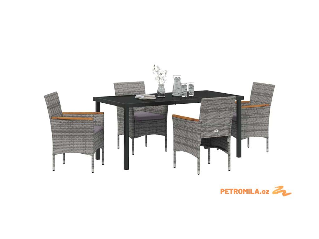 Zahradní jídelní souprava s polštářem 5 pcs Šedá polyratan