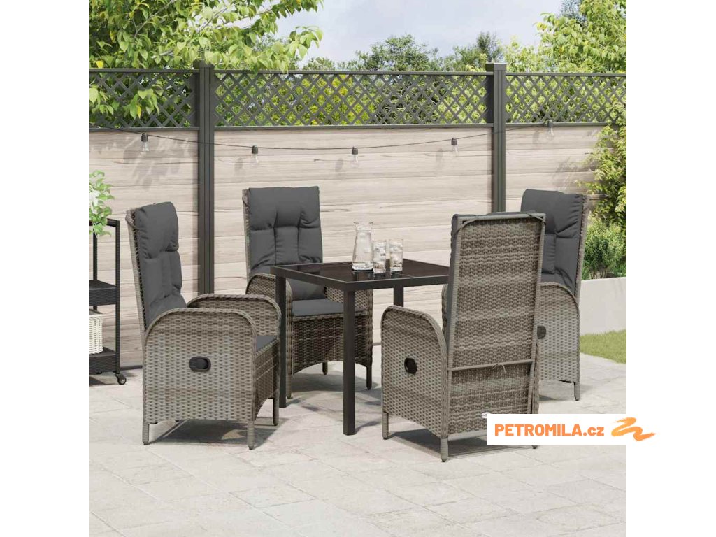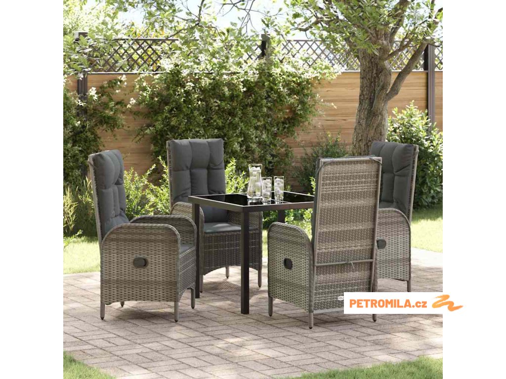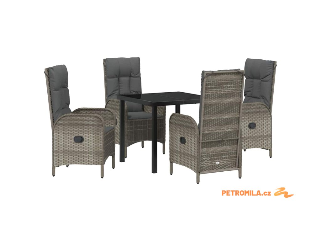 Zahradní jídelní souprava s polštářem 5 pcs Šedá polyratan