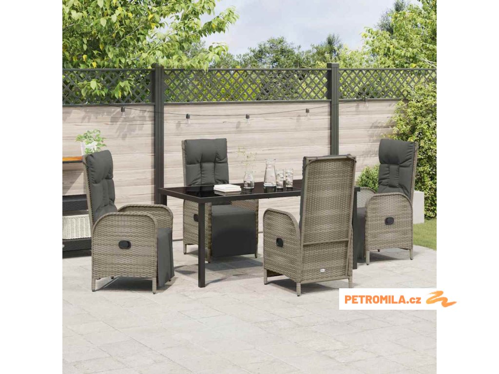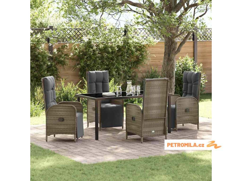Zahradní jídelní souprava s polštářem 5 pcs Šedá polyratan