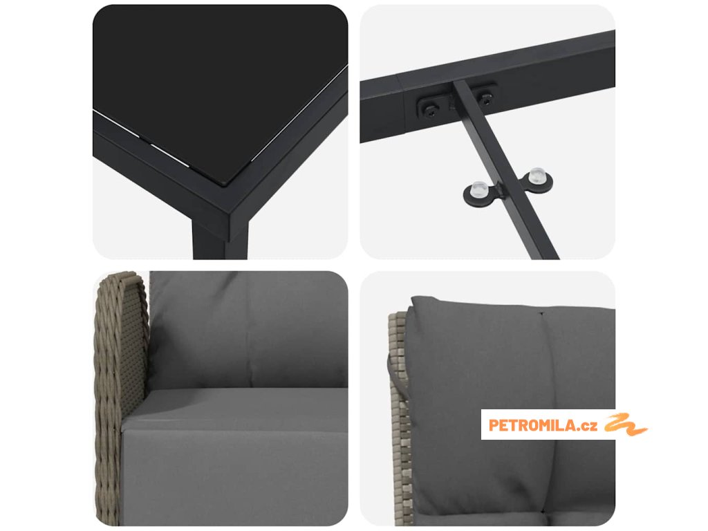 Zahradní jídelní souprava s polštářem 3 pcs Šedá polyratan