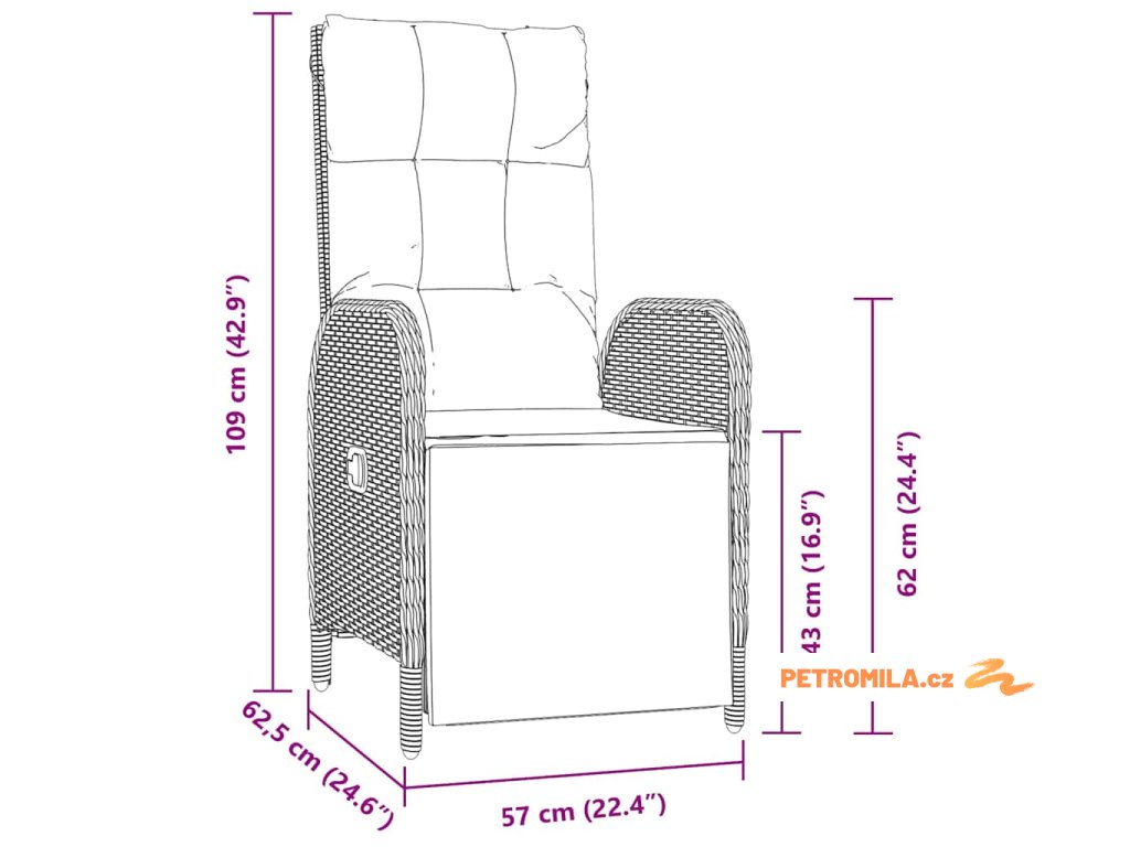 - 6 x Zahradní židle: 57 x 62.5 x 109 cm (D x Š x V)