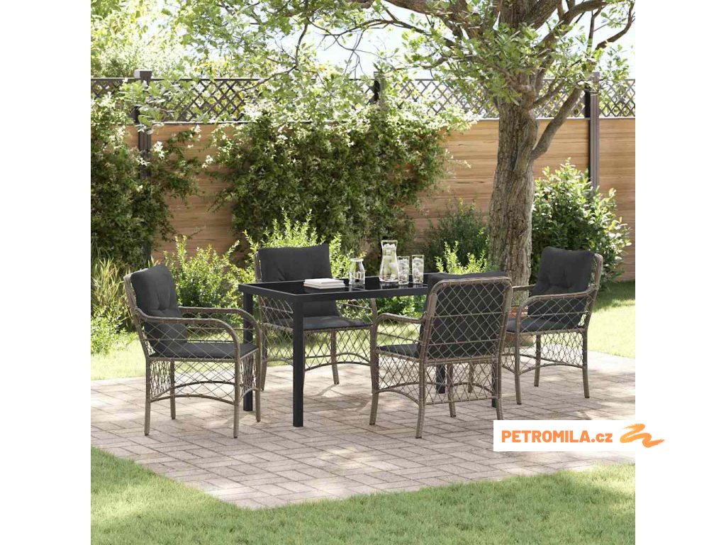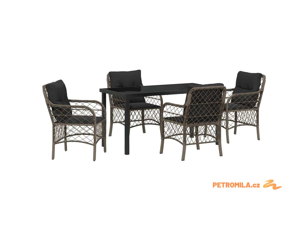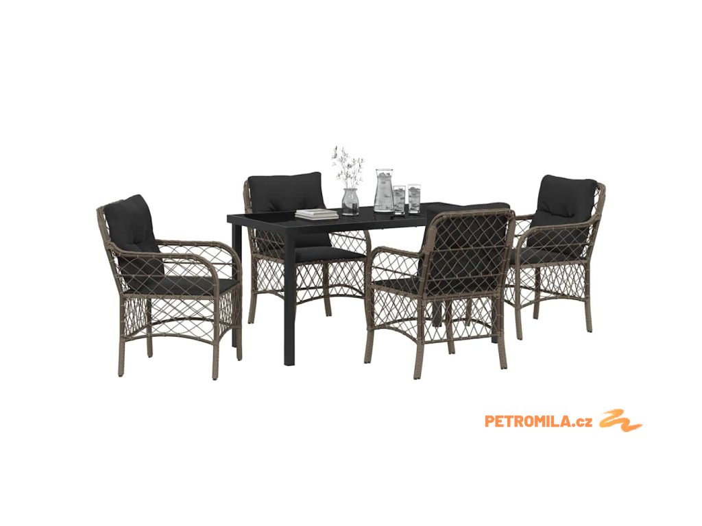 Zahradní jídelní souprava s polštářem 5 pcs Hnědá Poly ratan
