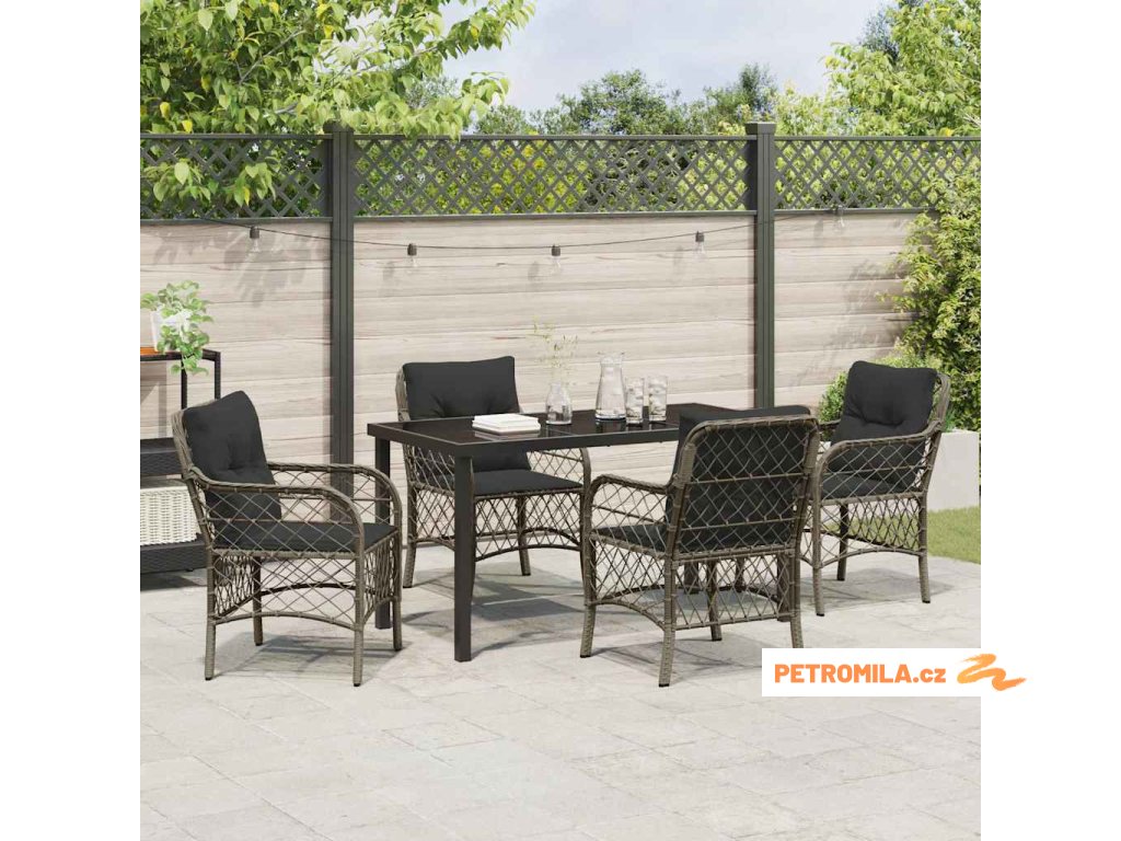 Zahradní jídelní souprava s polštářem 5 pcs Šedá polyratan