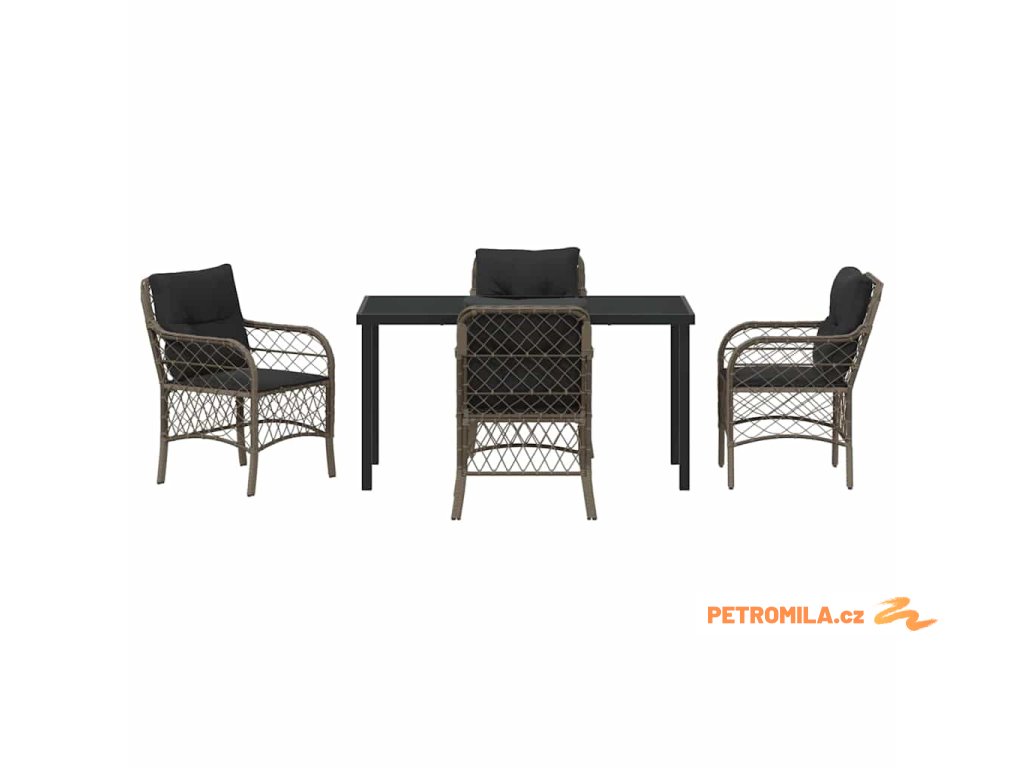 Zahradní jídelní souprava s polštářem 5 pcs Šedá Poly ratan