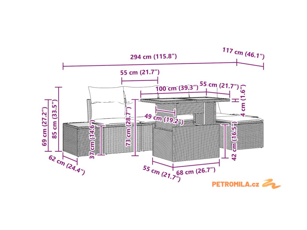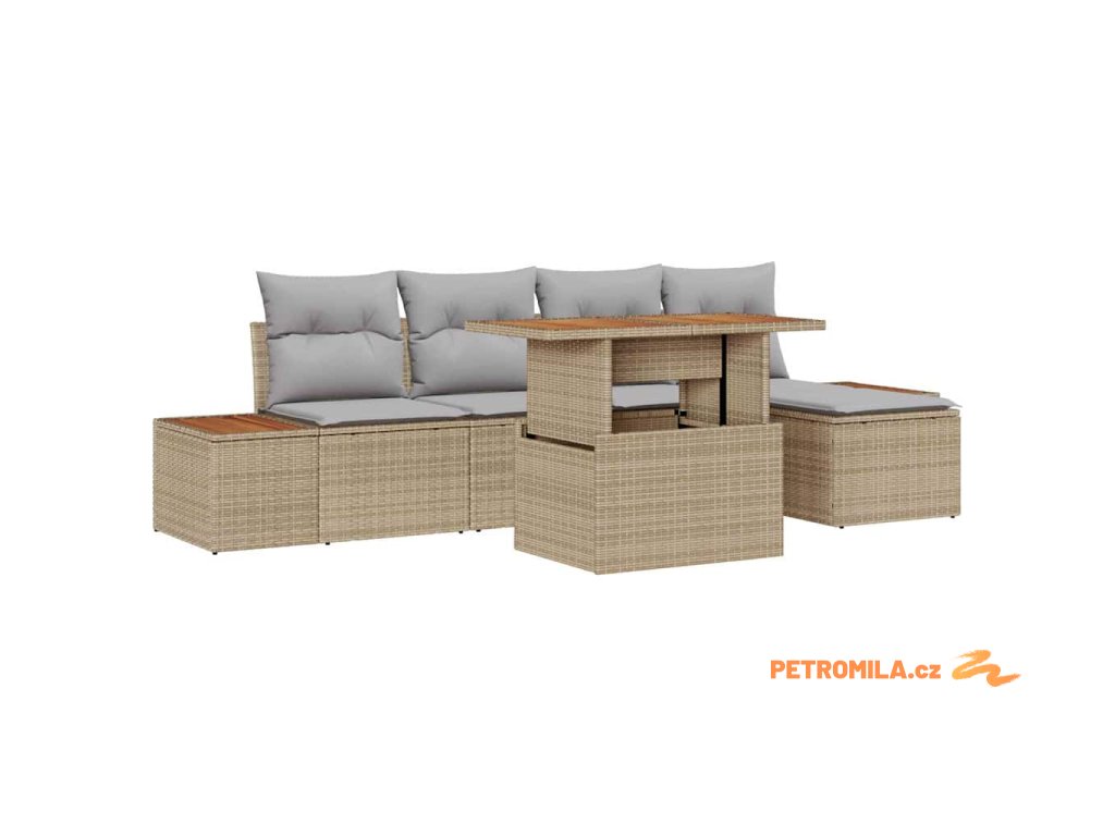 - Functional Components: Tento set obsahuje boční pohovku, centrální sedadla, taburet a zahradní stůl, všechny s vestavěným úložným prostorem. Tento multifunkční design poskytuje praktické využití pro další věci, udržujíc přitom prostor uklizený a organizovaný bez kompromisů ve stylu.