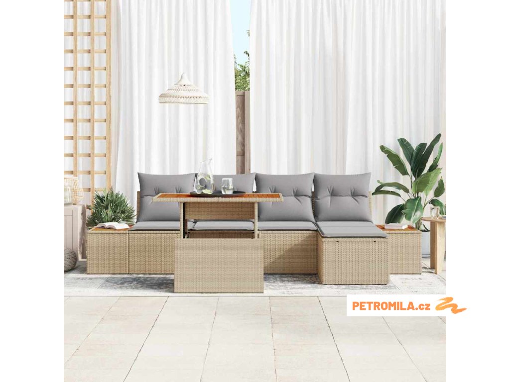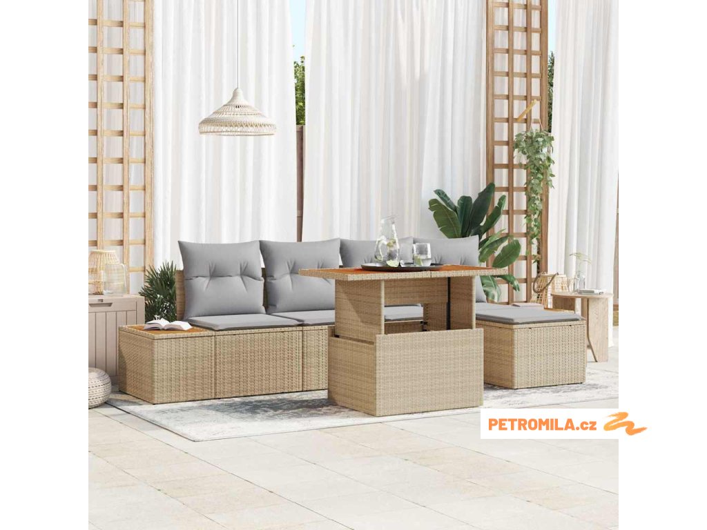 Zahradní jídelní souprava s polštářem 6 pcs Beige a šedá