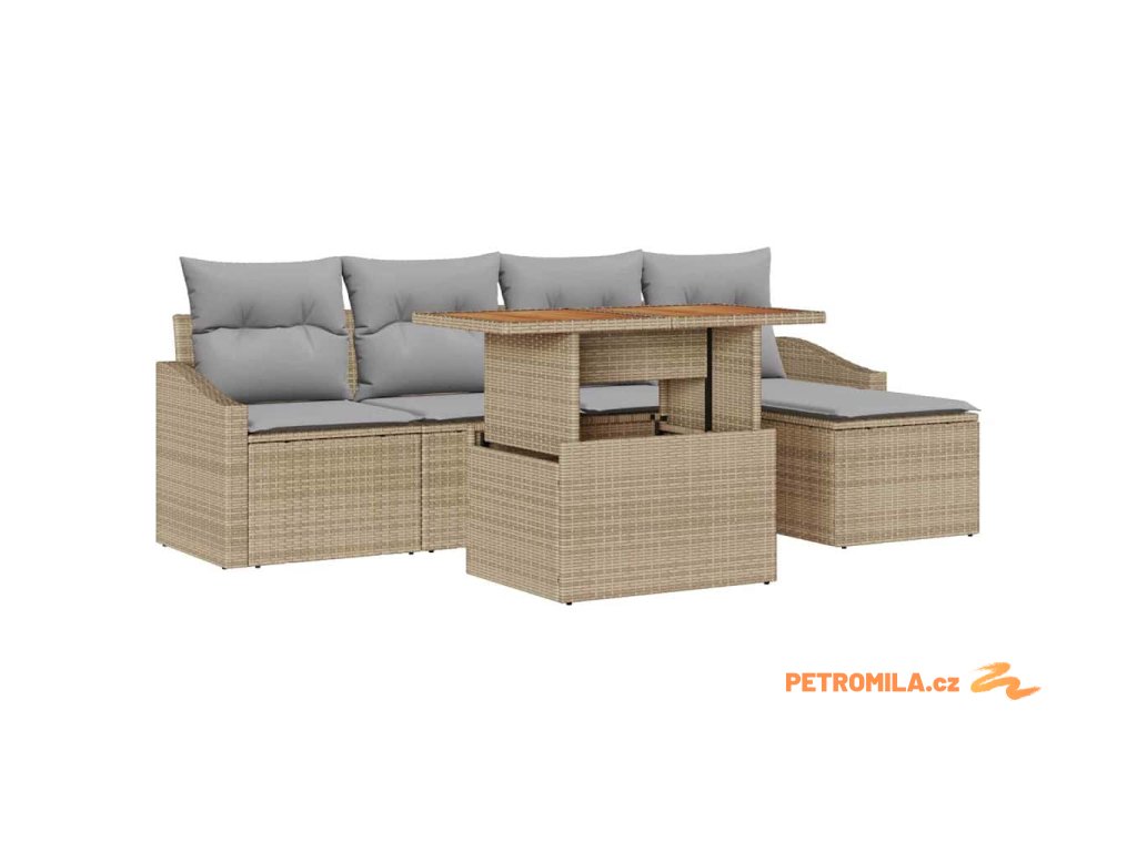 Zahradní jídelní souprava s polštářem 6 pcs Beige a šedá