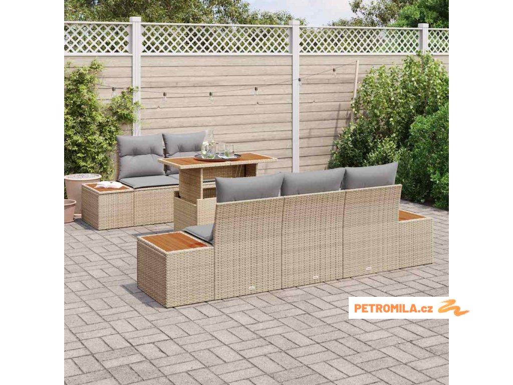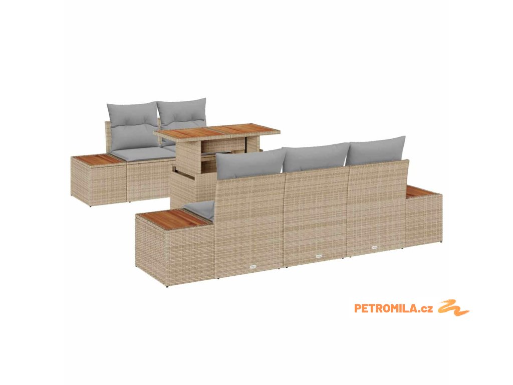 Zahradní jídelní souprava s polštářem 6 pcs Beige a šedá