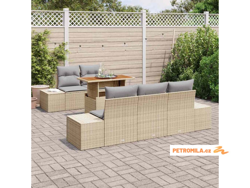 Zahradní jídelní souprava s polštářem 6 pcs Beige a šedá