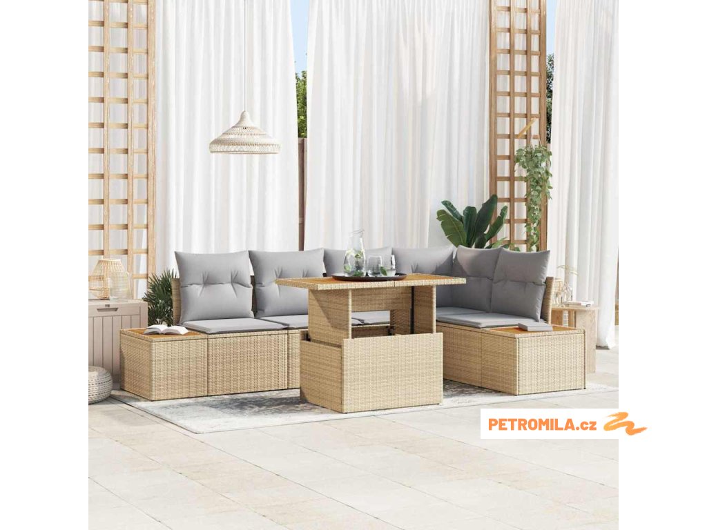 Zahradní jídelní souprava s polštářem 6 pcs Beige a šedá