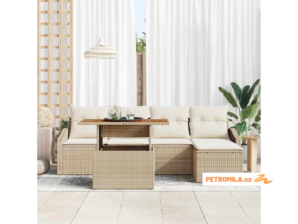 Zahradní jídelní souprava s polštářem 6 pcs Béžová a krémová