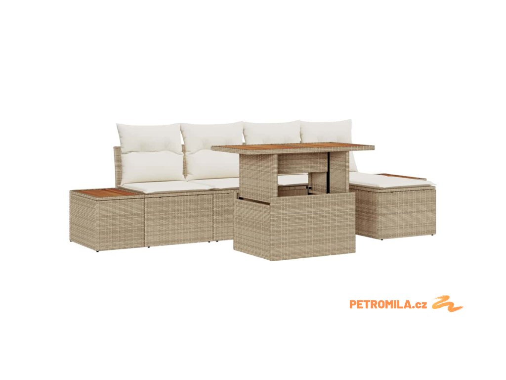 Zahradní jídelní souprava s polštářem 6 pcs Béžová a krémová