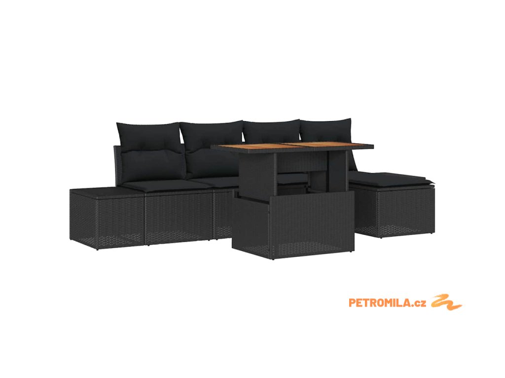 Zahradní jídelní souprava s polštářem 6 pcs Černá a hnědá