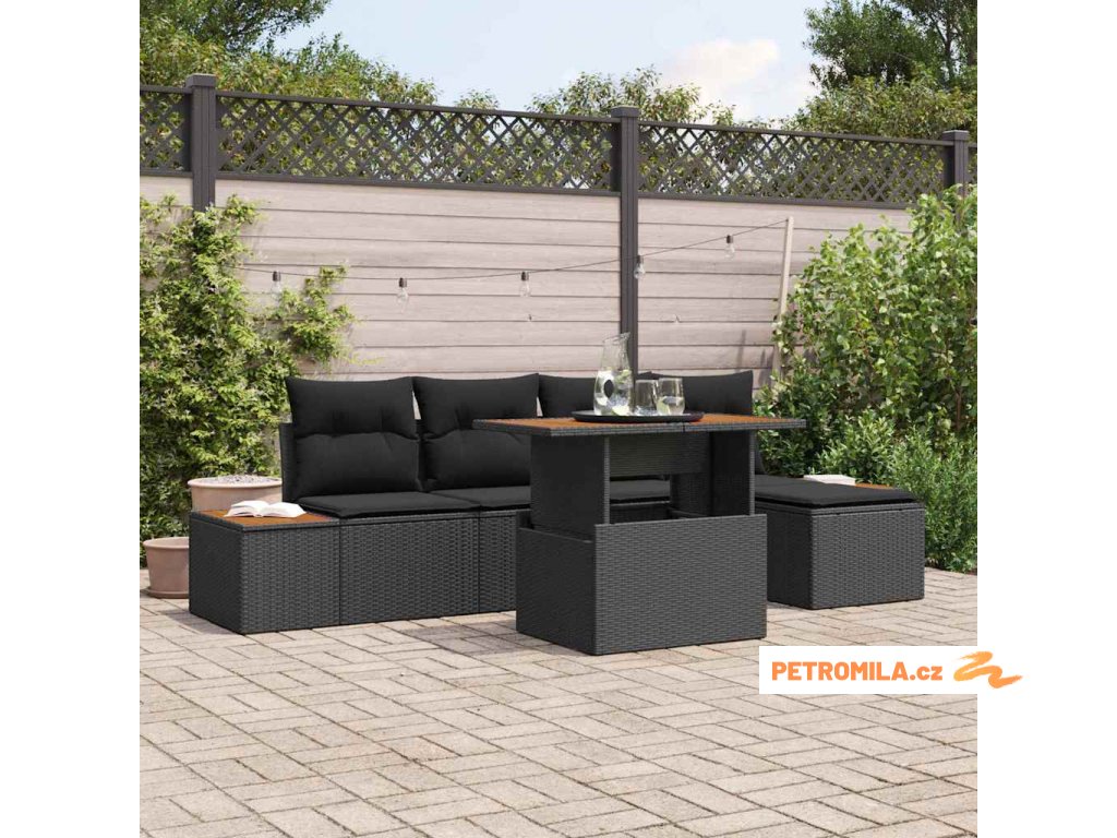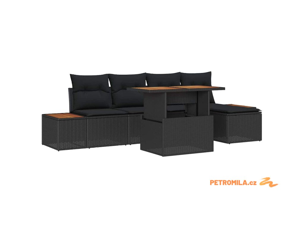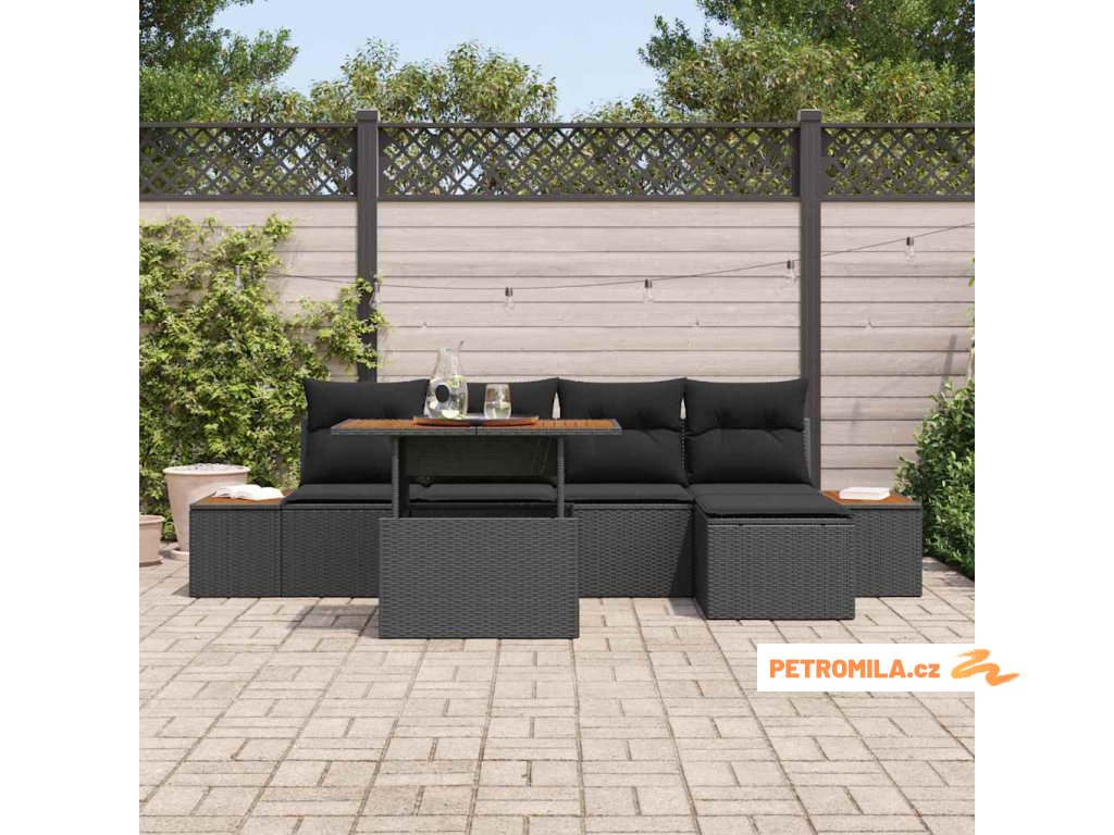 Zahradní jídelní souprava s polštářem 6 pcs Černá a hnědá