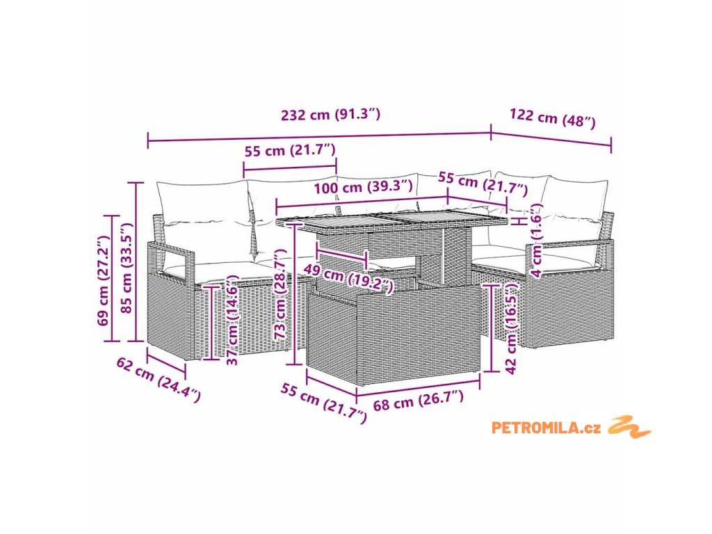 - Nastavitelné komponenty: Vybaveno přizpůsobitelnými prvky, tento jídelní set zahrnuje modulární kousky a nastavitelné nohy, což nabízí všestrannost a snadné použití. Promyšlený design umožňuje uživatelům personalizovat jejich uspořádání podle konkrétních potřeb, ať už vytvoří útulný koutek nebo rozsáhlou seating plochu pro větší shromáždění.