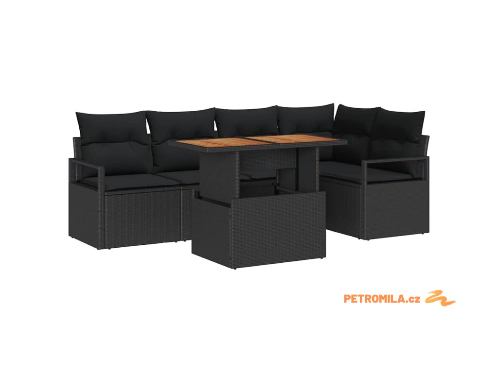 Zahradní jídelní souprava s polštářem 6 pcs Černá a hnědá