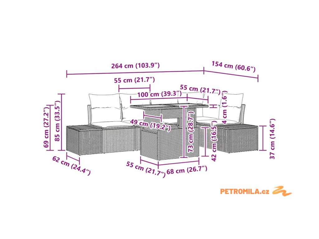 - Údržba: Aby se prodloužila životnost vaší sady, používejte ochranný kryt během drsných povětrnostních podmínek a dodržujte snadnou údržbu utíráním povrchů suchým hadříkem. Polstry se zipem lze pohodlně odejmout pro praní, což zajišťuje, že sada zůstane čistá a lákavá během všech ročních období.