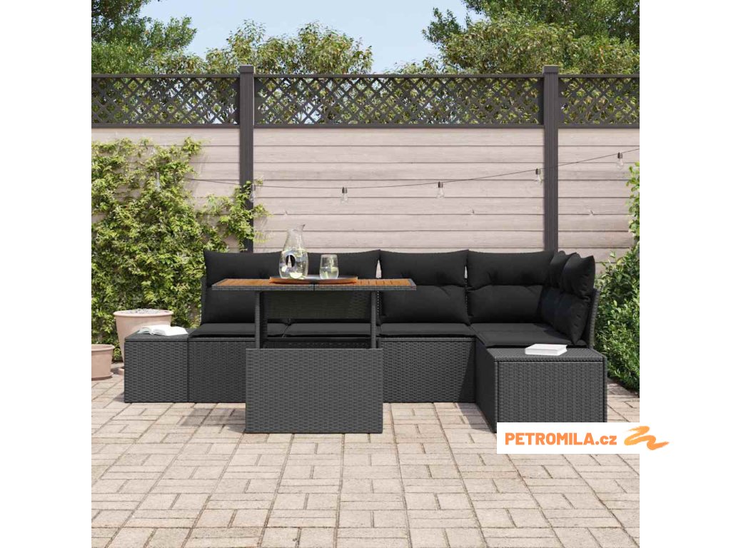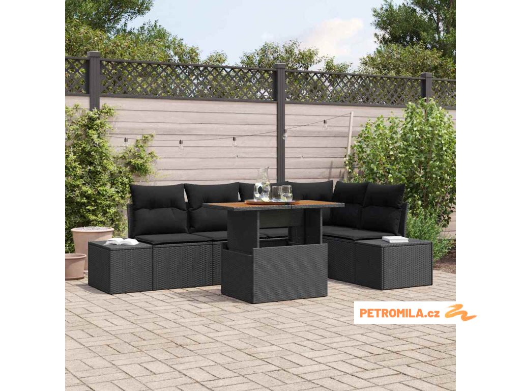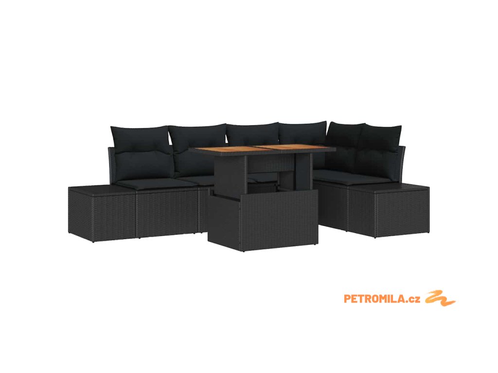 Zahradní jídelní souprava s polštářem 6 pcs Černá a hnědá
