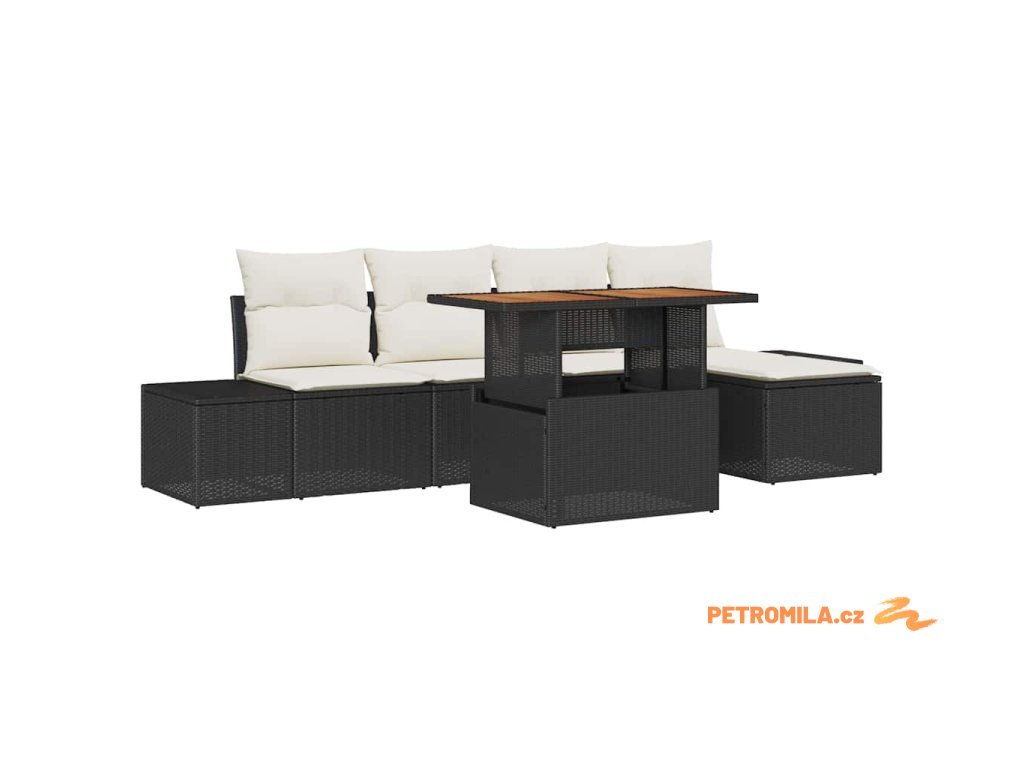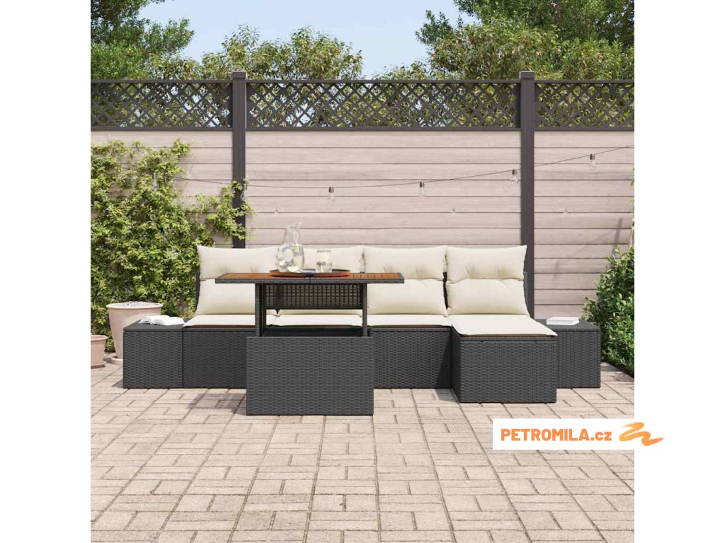 Zahradní jídelní souprava s polštářem 6 pcs Černá a krémová