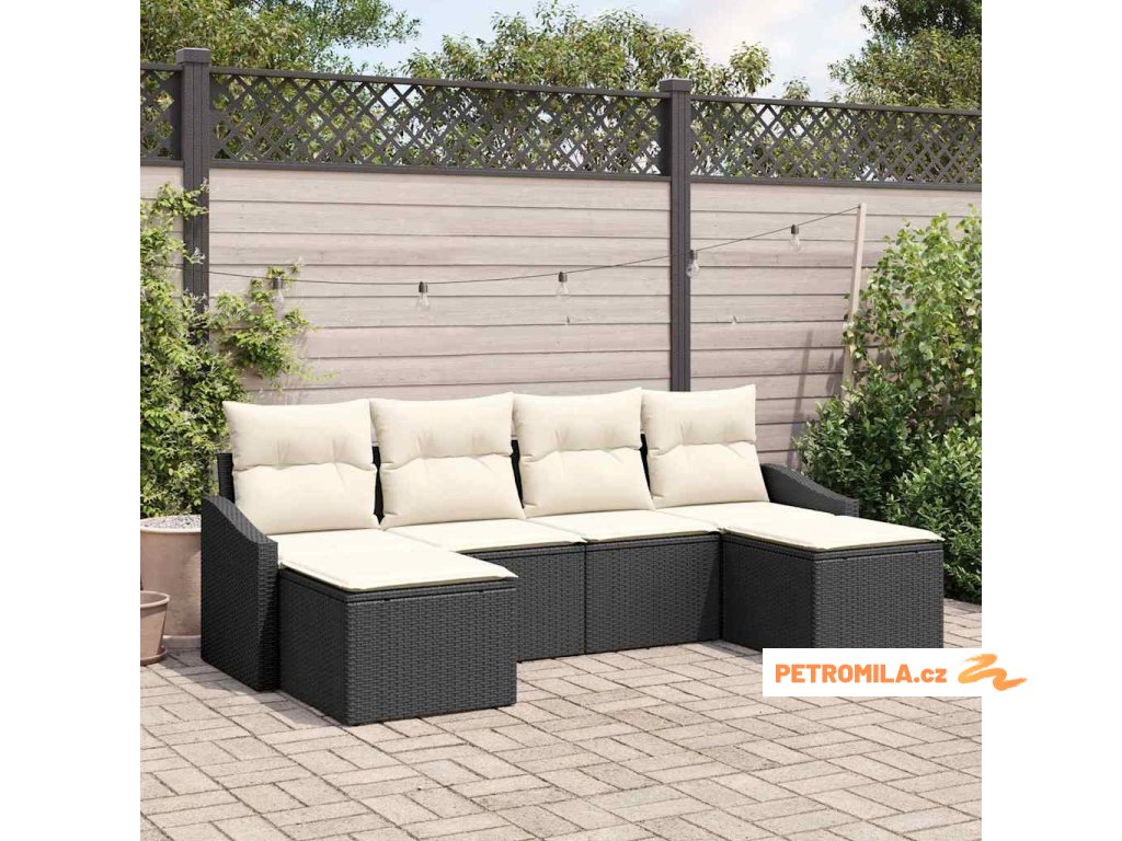 Zahradní jídelní souprava s polštářem 6 pcs Černá a krémová
