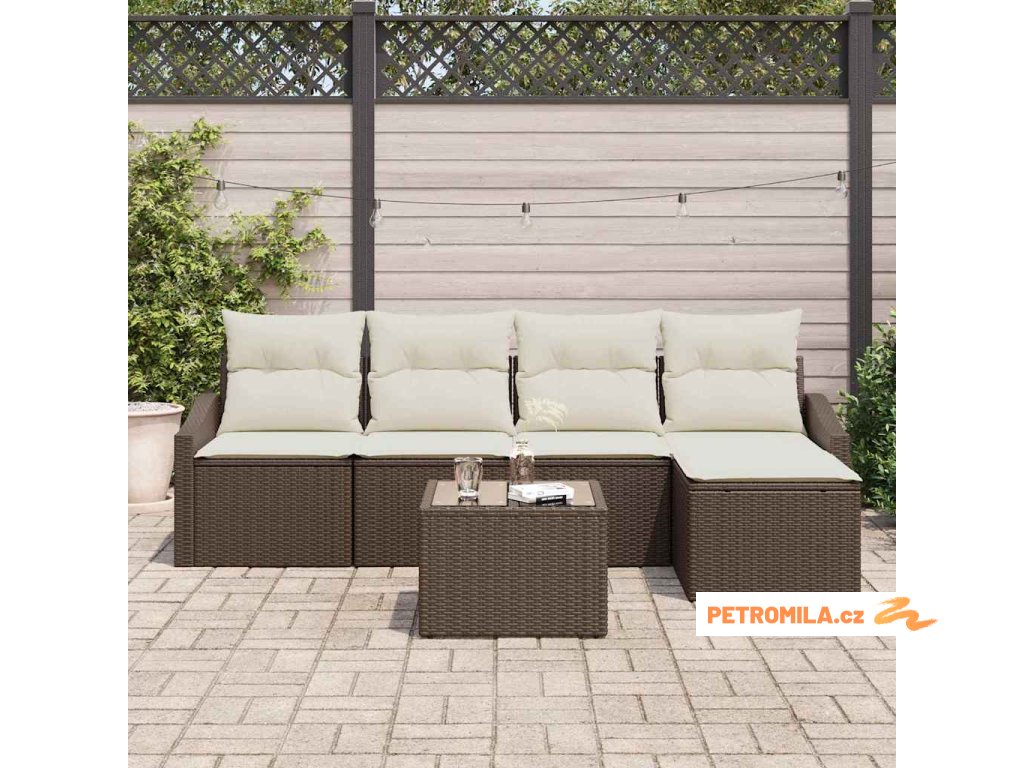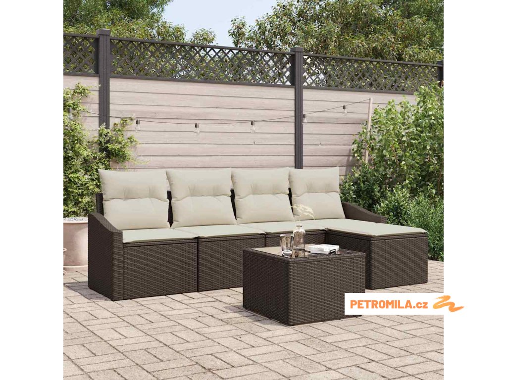 Zahradní jídelní souprava s polštářem 6 pcs Hnědá a krémová