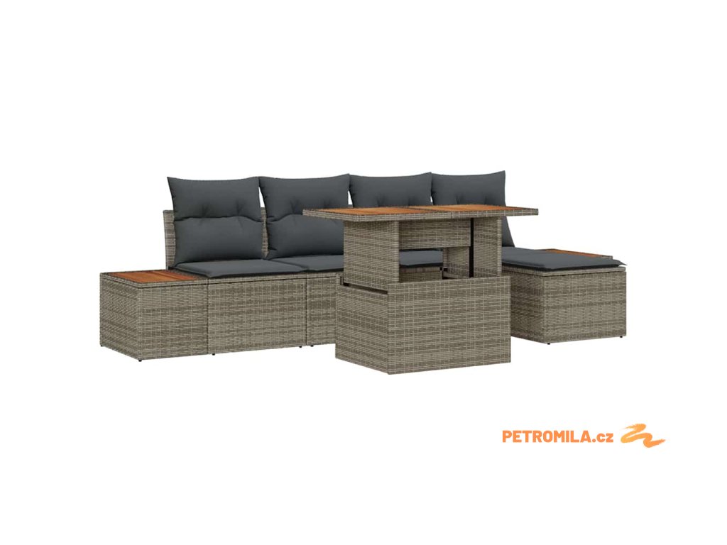 - Functional Components: Tento set obsahuje boční pohovku, centrální sedadla, taburet a zahradní stůl, všechny s vestavěným úložným prostorem. Tento multifunkční design poskytuje praktické využití pro další věci, udržujíc přitom prostor uklizený a organizovaný bez kompromisů ve stylu.
