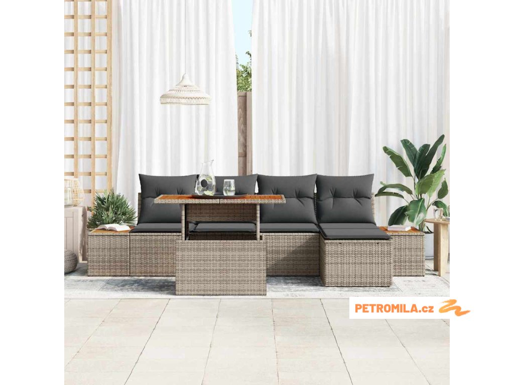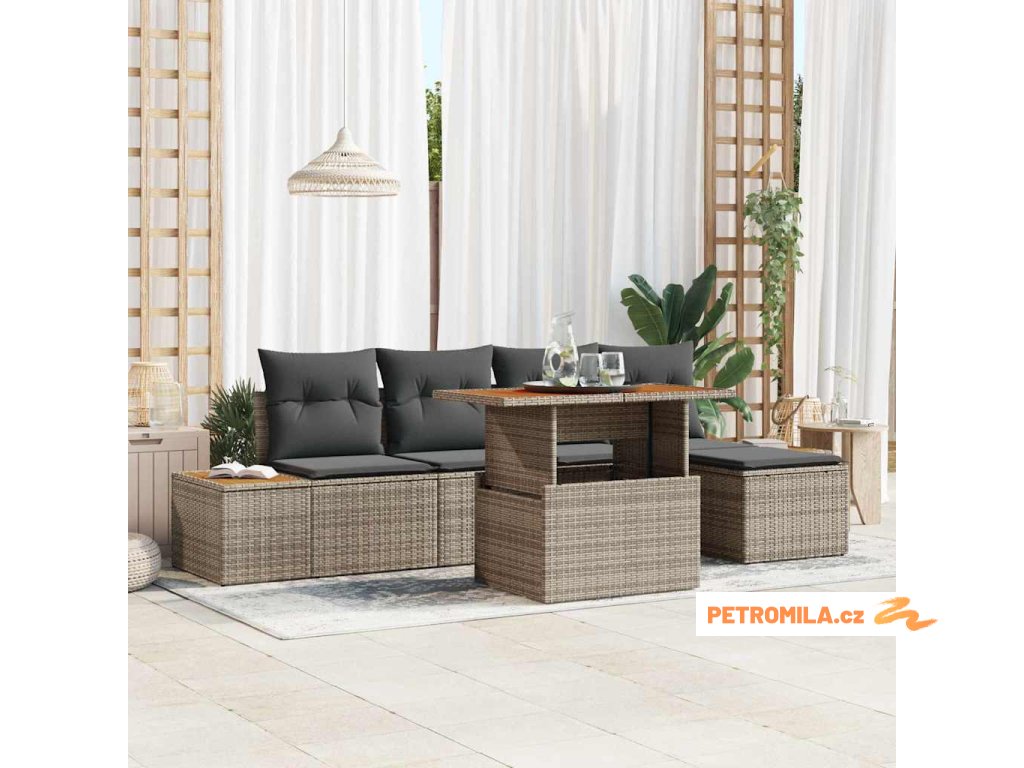Zahradní jídelní souprava s polštářem 6 pcs Šedá a hnědá