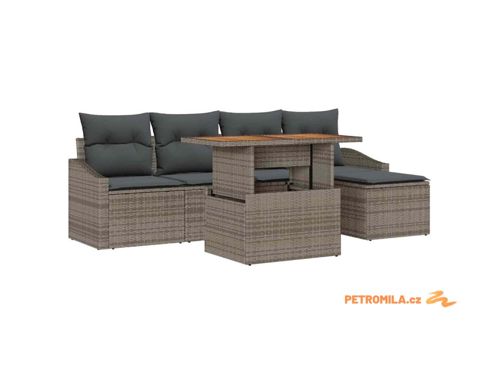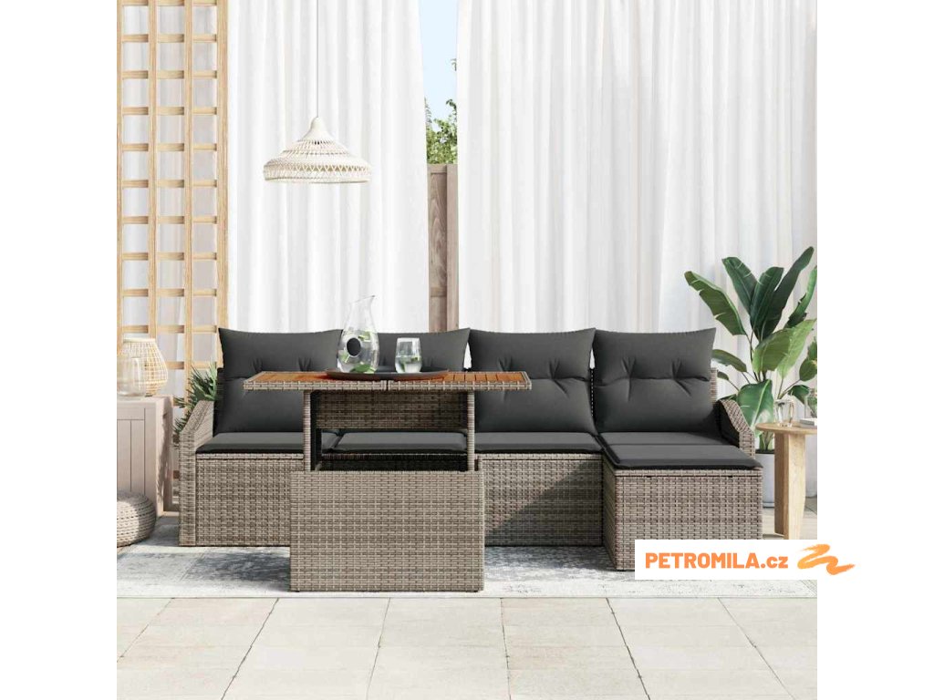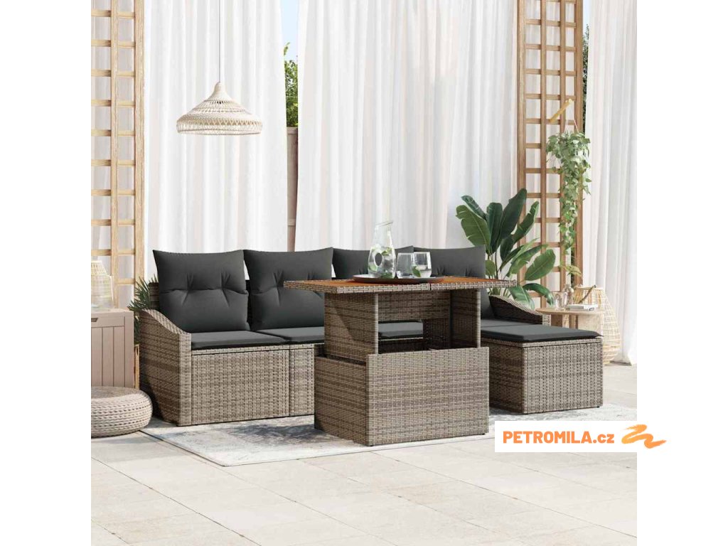 Zahradní jídelní souprava s polštářem 6 pcs Šedá a hnědá