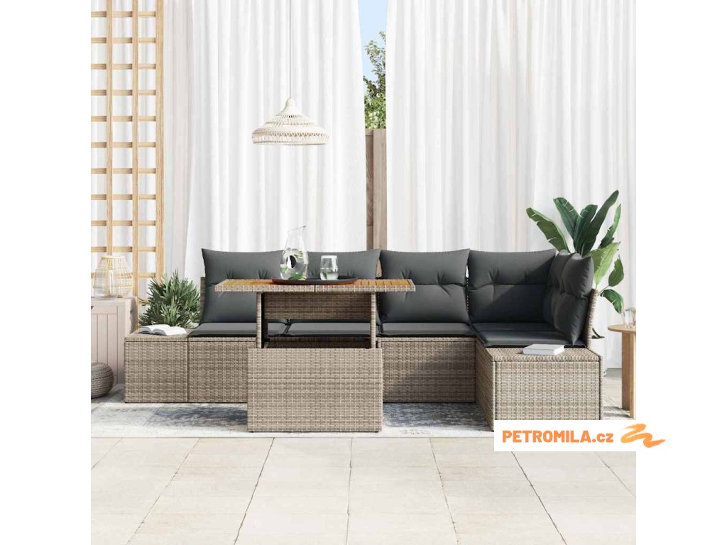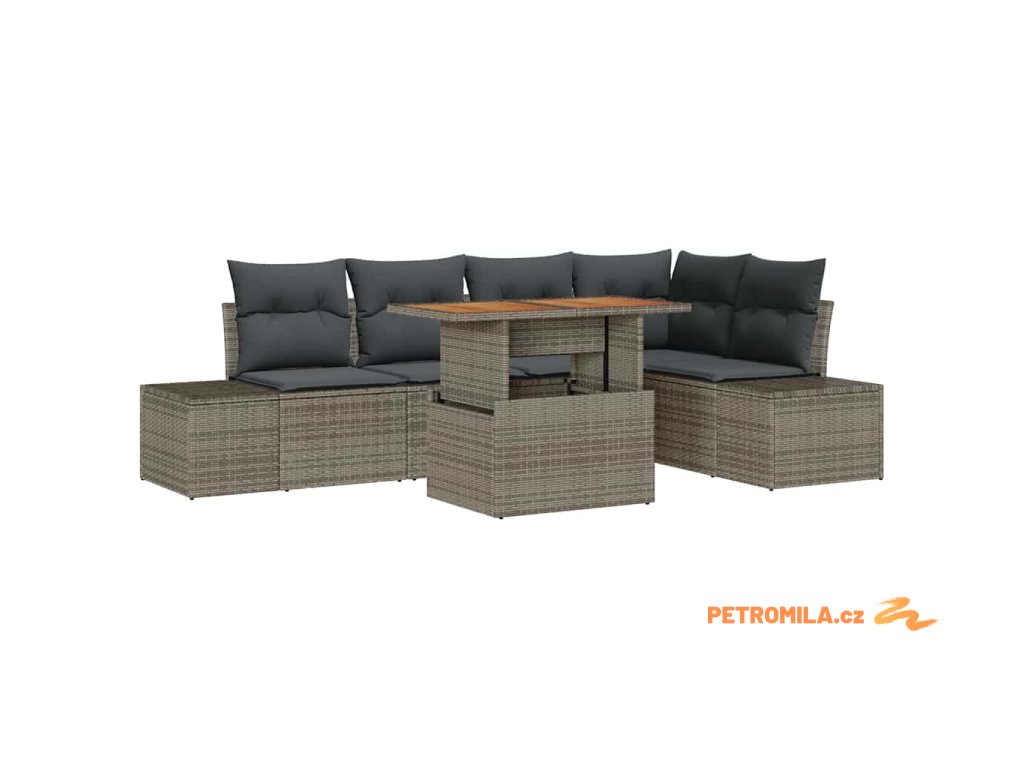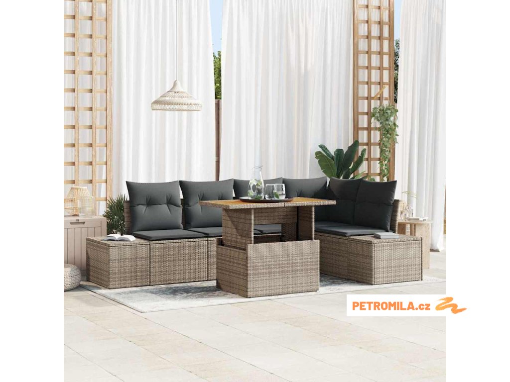Zahradní jídelní souprava s polštářem 6 pcs Šedá a hnědá