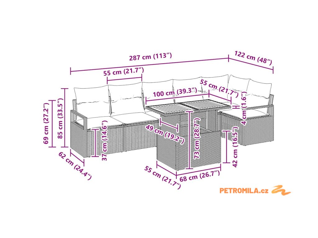 - Úplná sada: Obsahuje dvě křesla s opěrkami, jedno rohové sezení, tři středové seaty a zahradní stůl, každý navržený s vlastními možnostmi úložiště. Tato sada maximalizuje prostor a funkčnost, poskytující dostatek prostoru k sezení pro všechny hosty a bezpečné úložiště pro polštáře a doplňky.