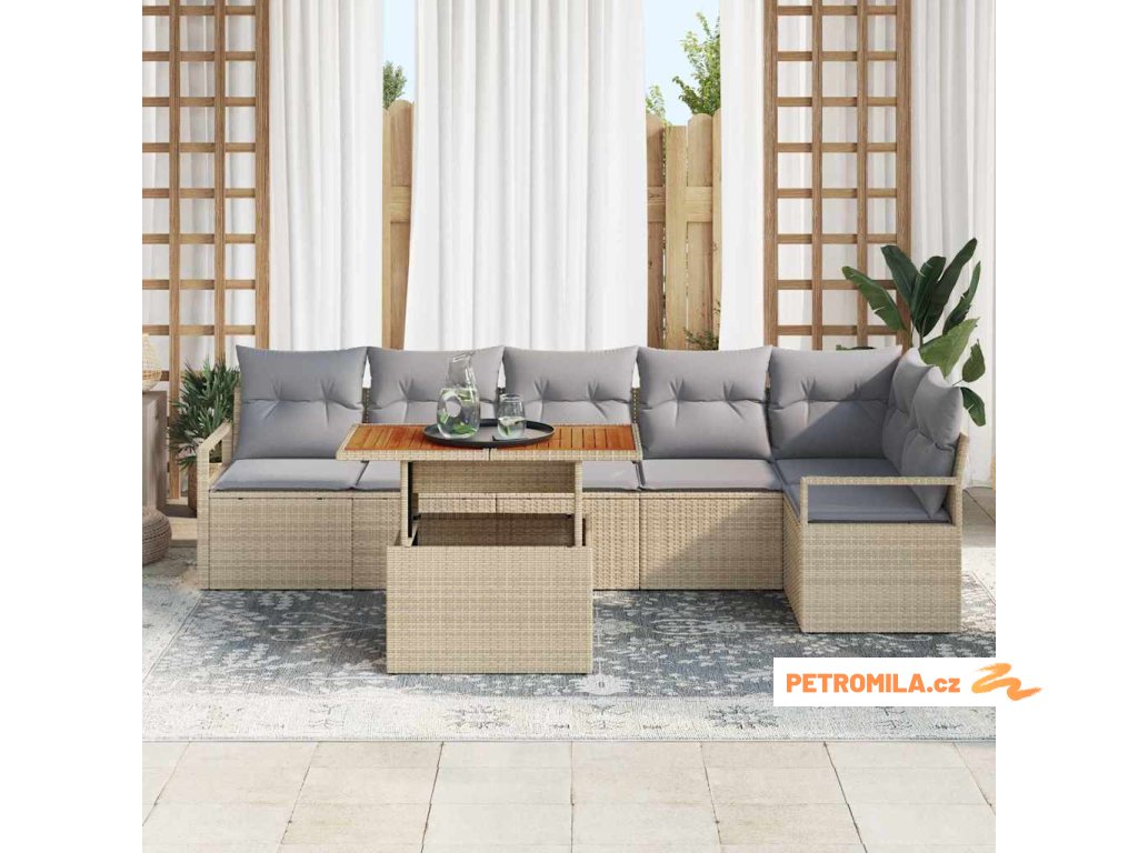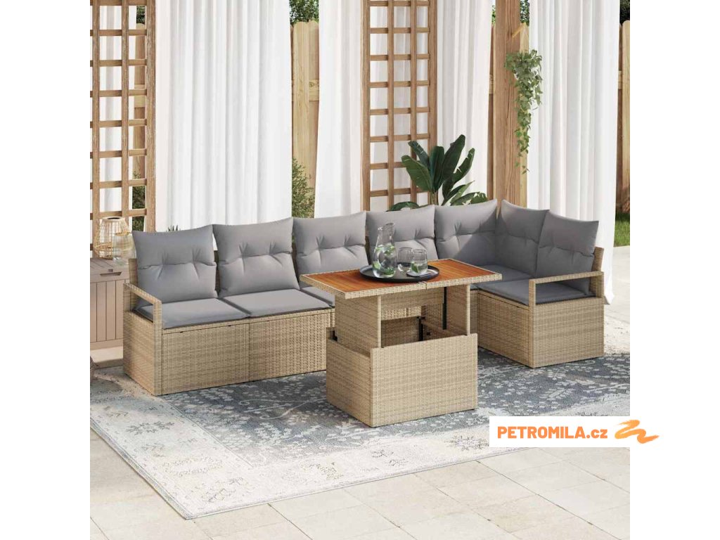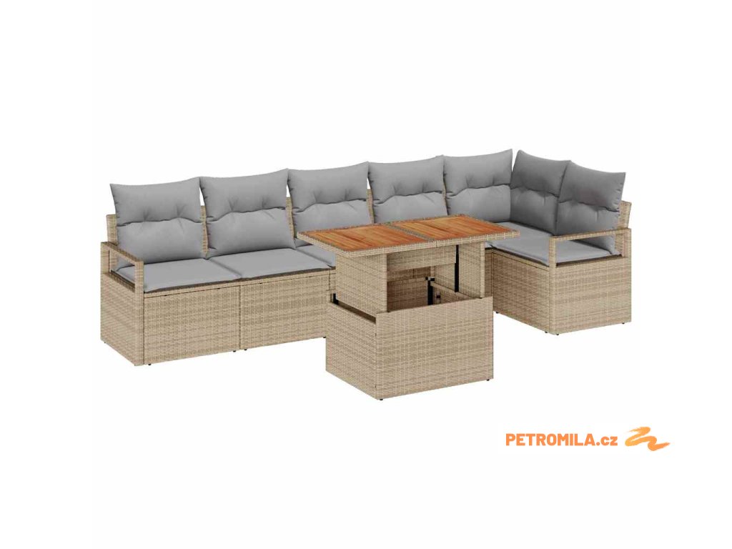 Zahradní jídelní souprava s polštářem 7 pcs Beige a šedá