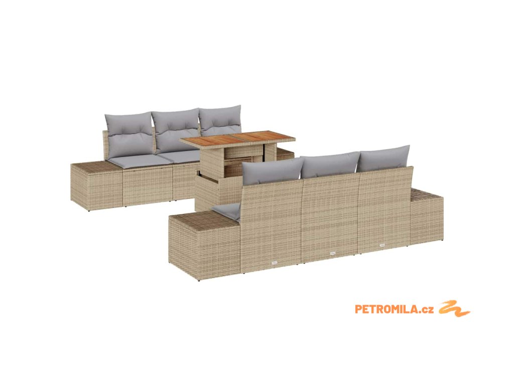 Zahradní jídelní souprava s polštářem 7 pcs Beige a šedá